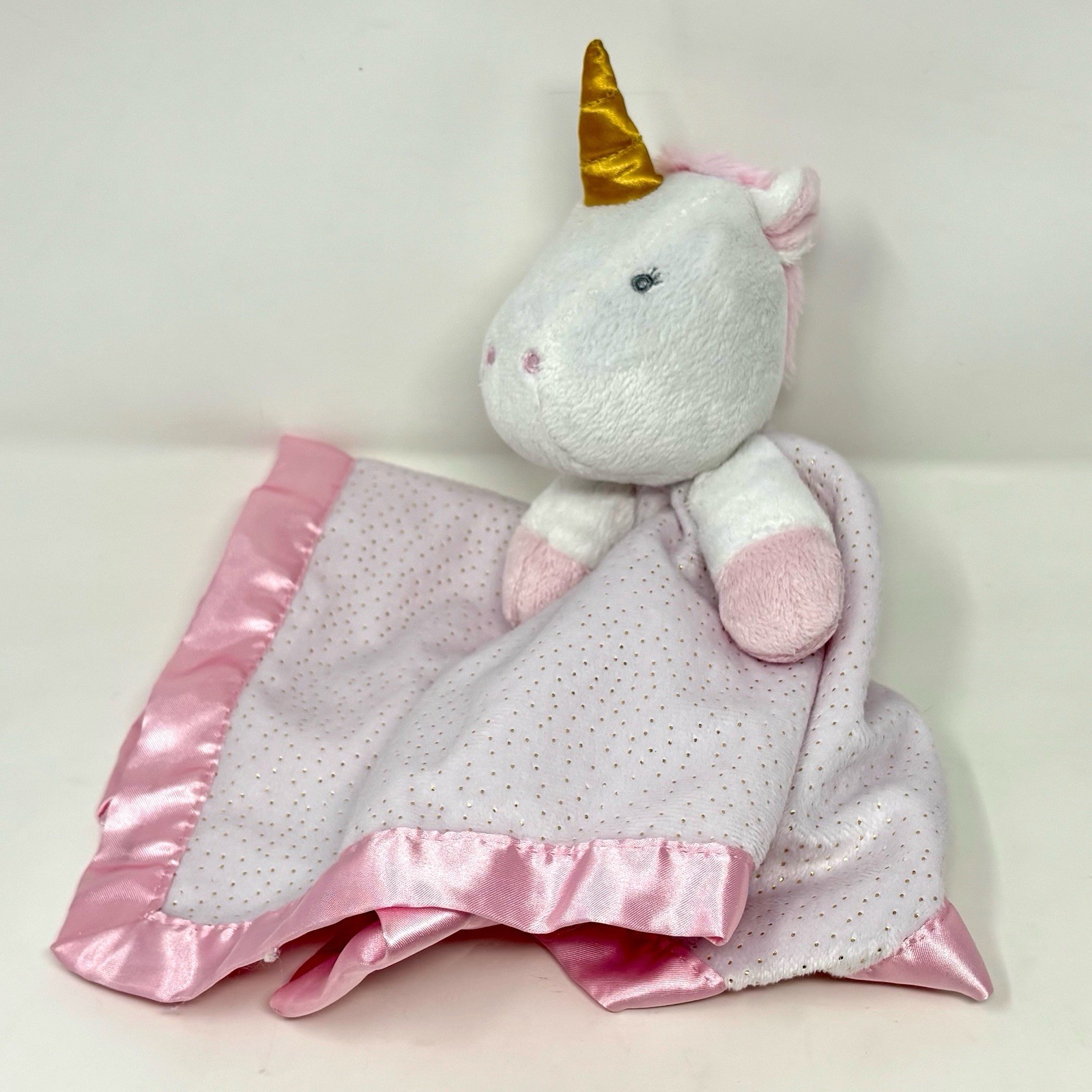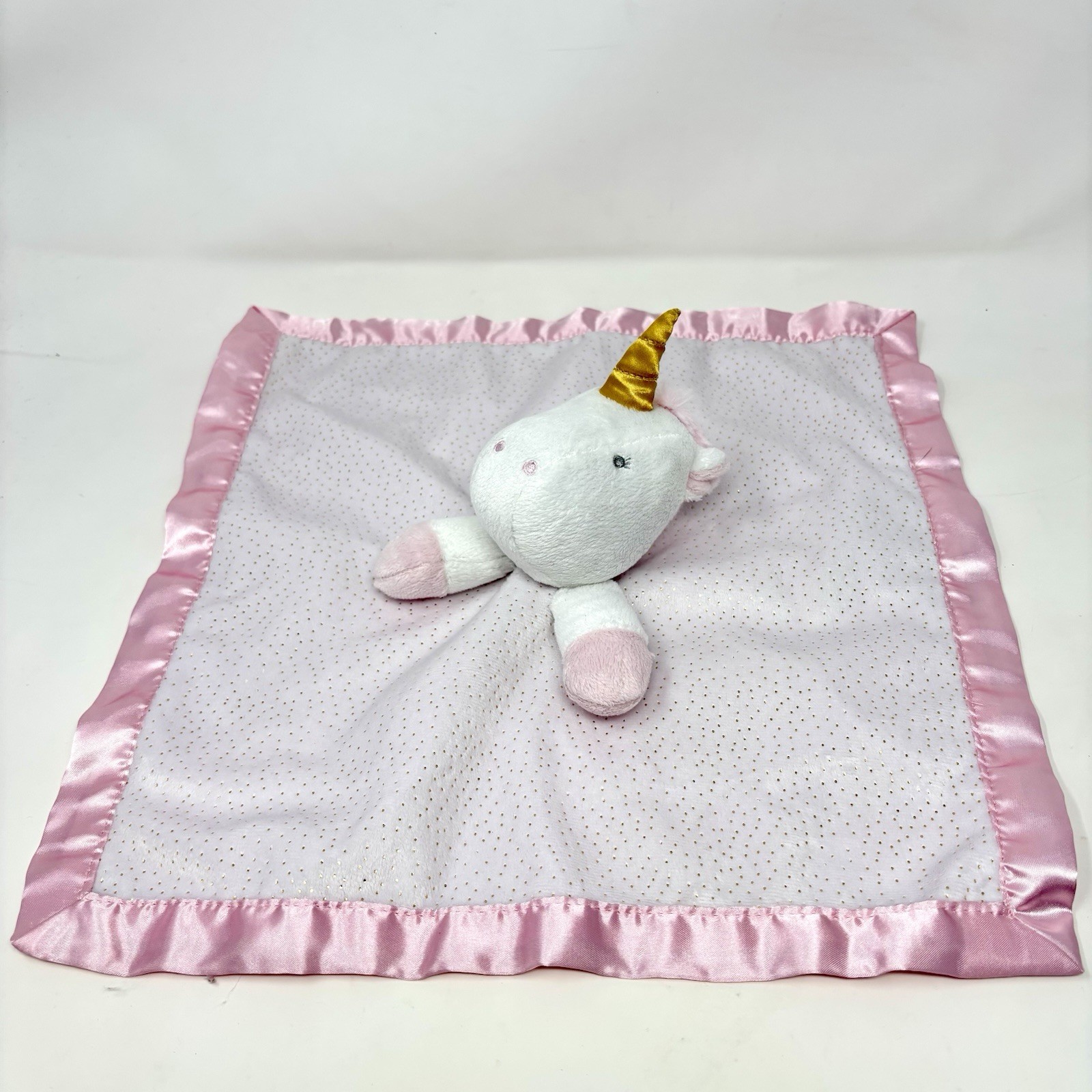 Cloud Island White Pink Silver Dot Sparkly Unicorn Baby Security Blanket Lovey