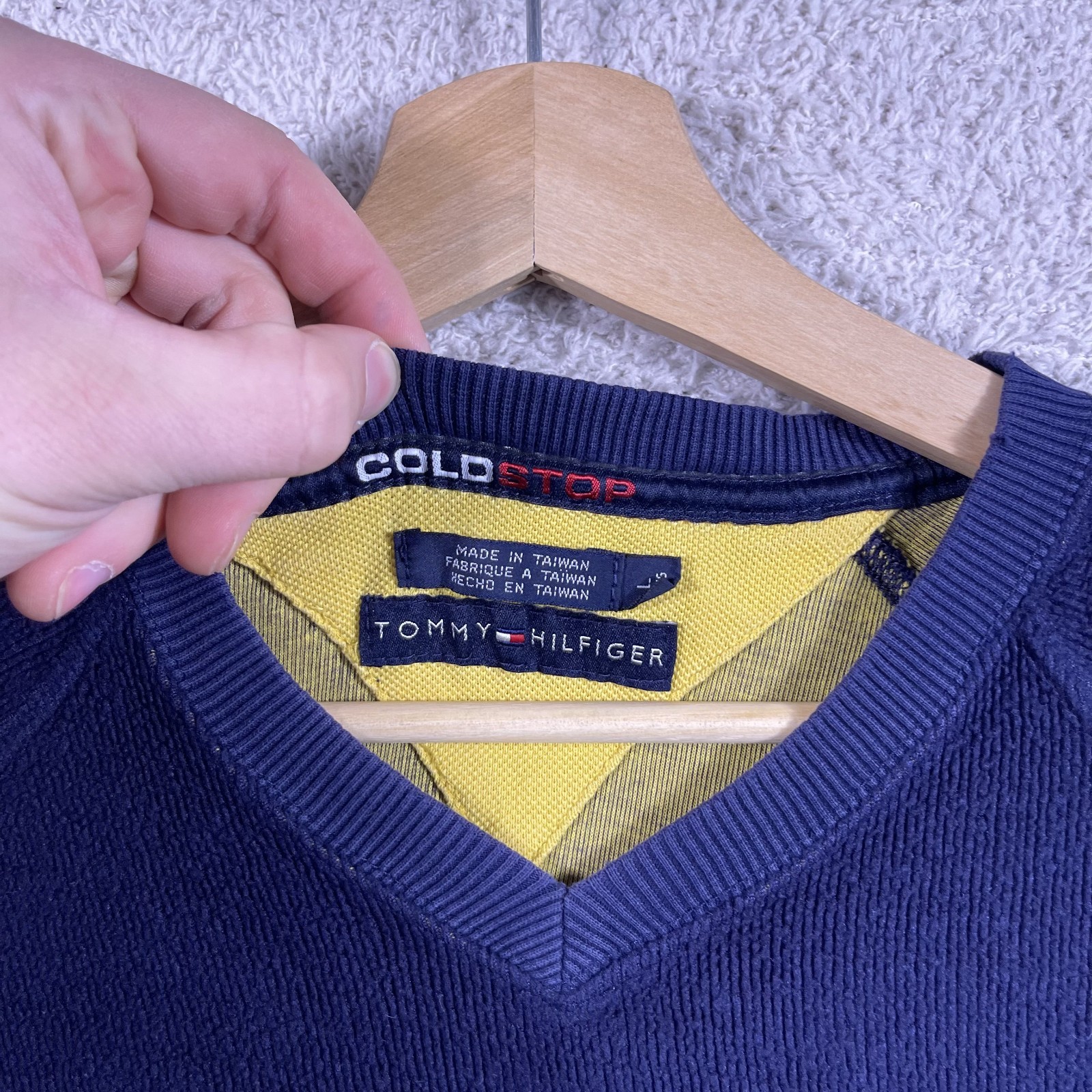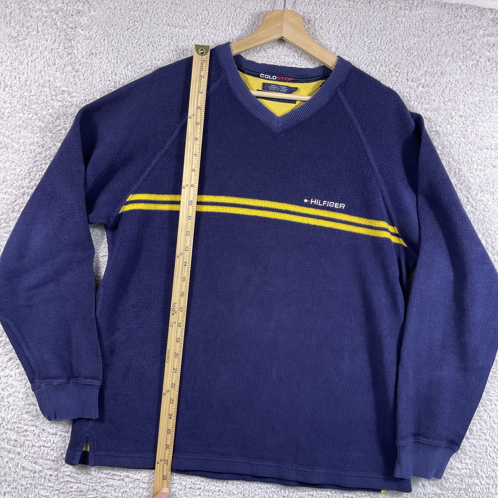 как выглядит Vintage Tommy Hilfiger Sweater Mens Large Navy Yellow Striped Y2K Skate Coldstop фото