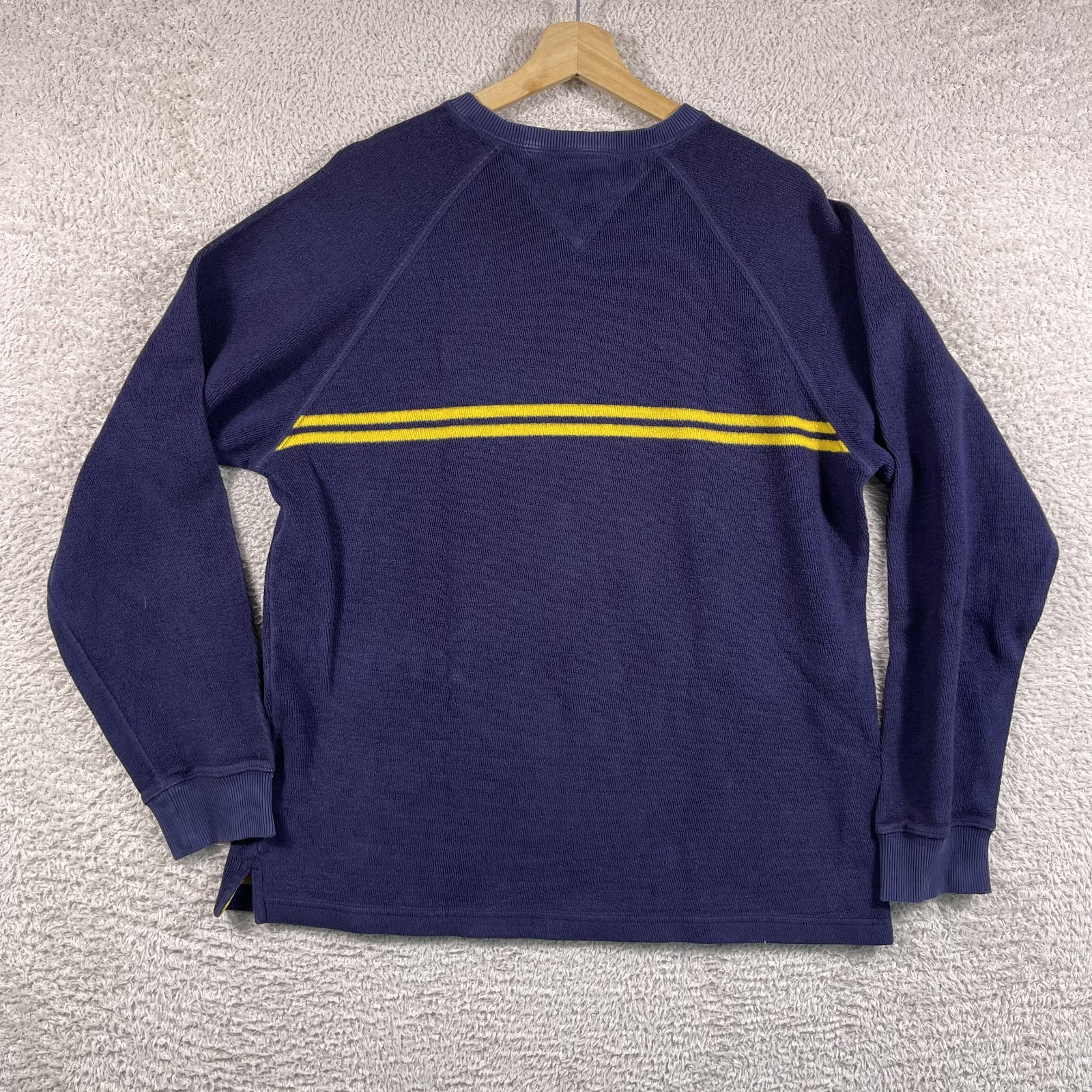 Vintage Tommy Hilfiger Sweater Mens Large Navy Yellow Striped Y2K Skate Coldstop
