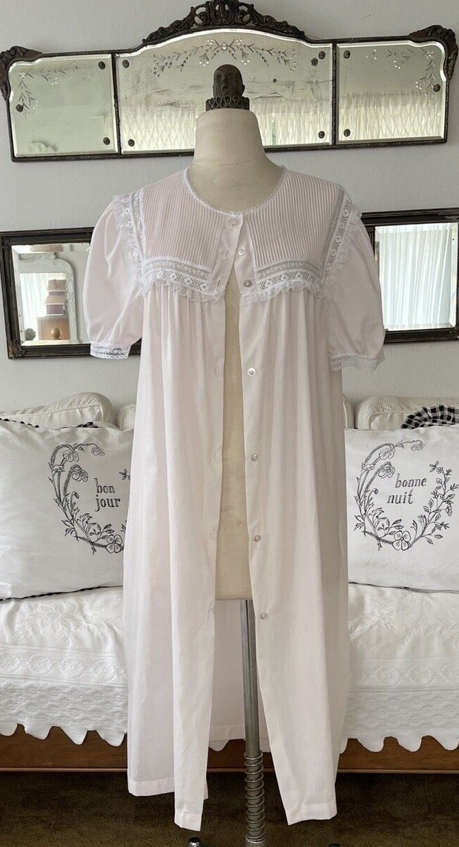 VTG Barbizon Pink Peignoir Nightgown Robe Set Pintucks Lace Cottage Sissy Med