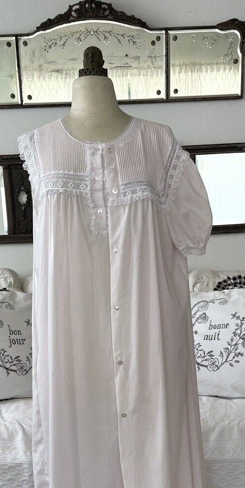как выглядит VTG Barbizon Pink Peignoir Nightgown Robe Set Pintucks Lace Cottage Sissy Med фото