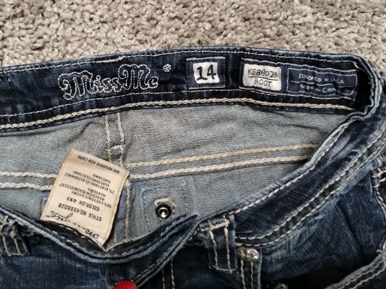 Miss Me Girl's Bootcut Blue Jeans Size 14 Denim Embroidered Pockets Sequins