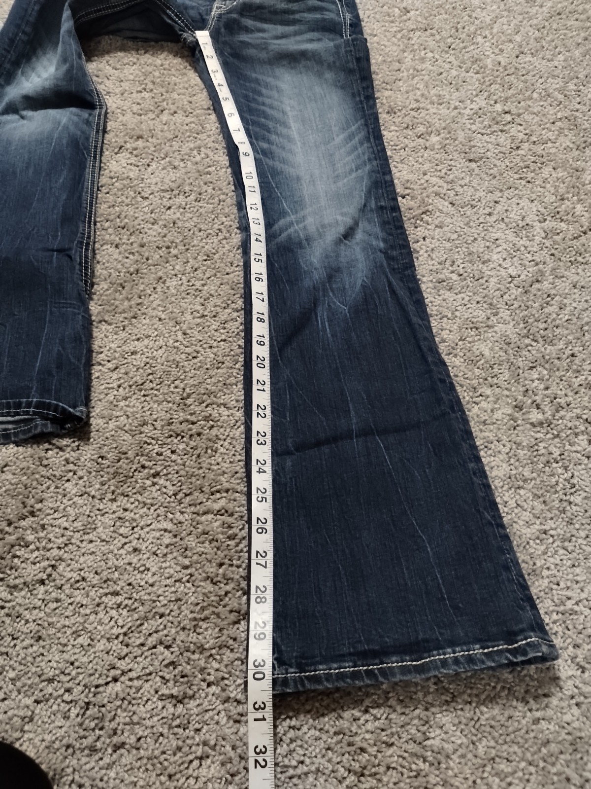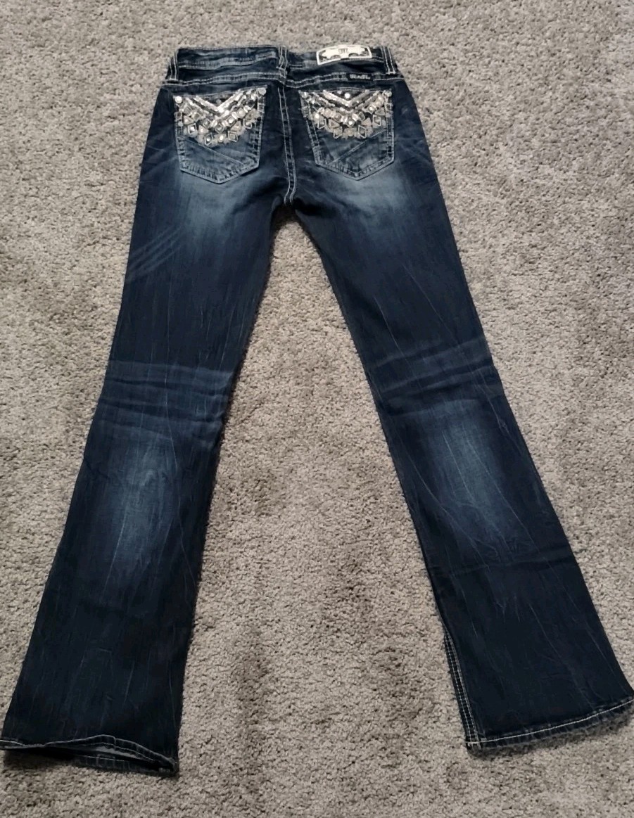 как выглядит Miss Me Girls Bootcut Blue Jeans Size 14 Denim Embroidered Pockets Sequins фото