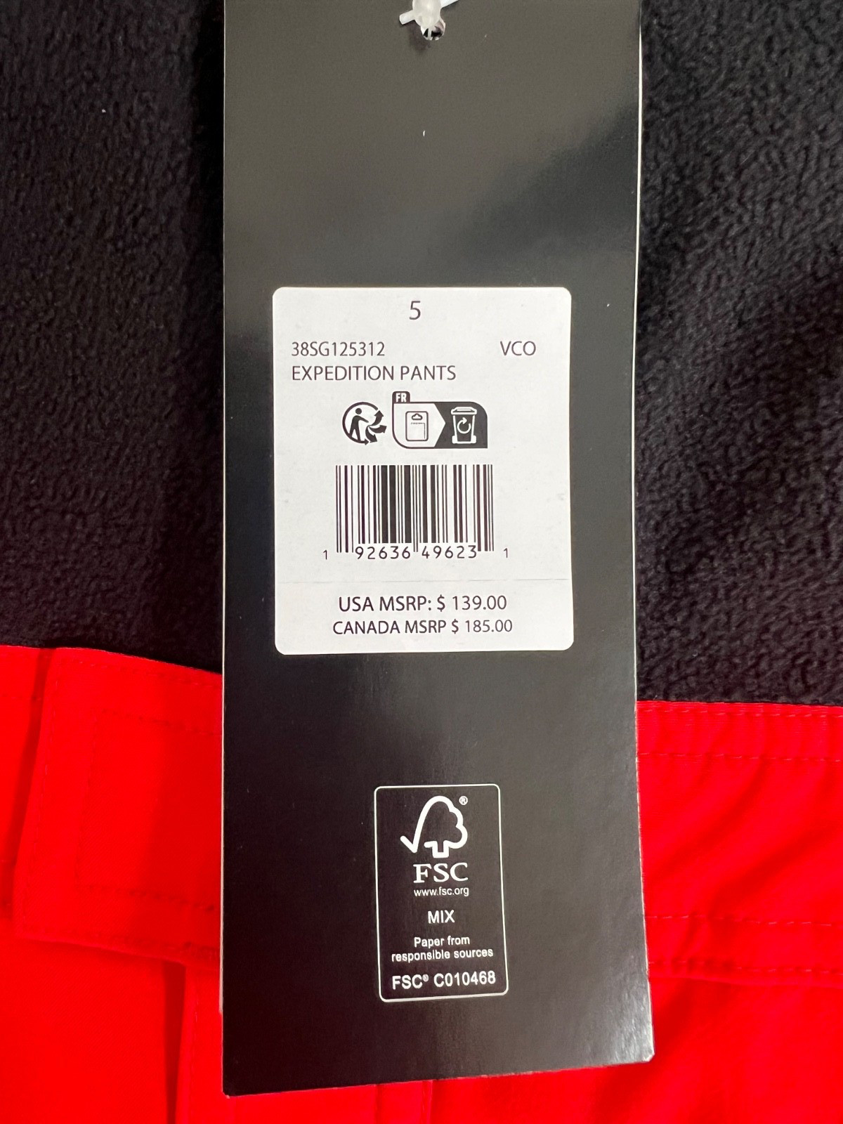 NWT Spyder Boys Girls Expedition Snow Pants Ski Bibs Volcano Red Size 5. H10