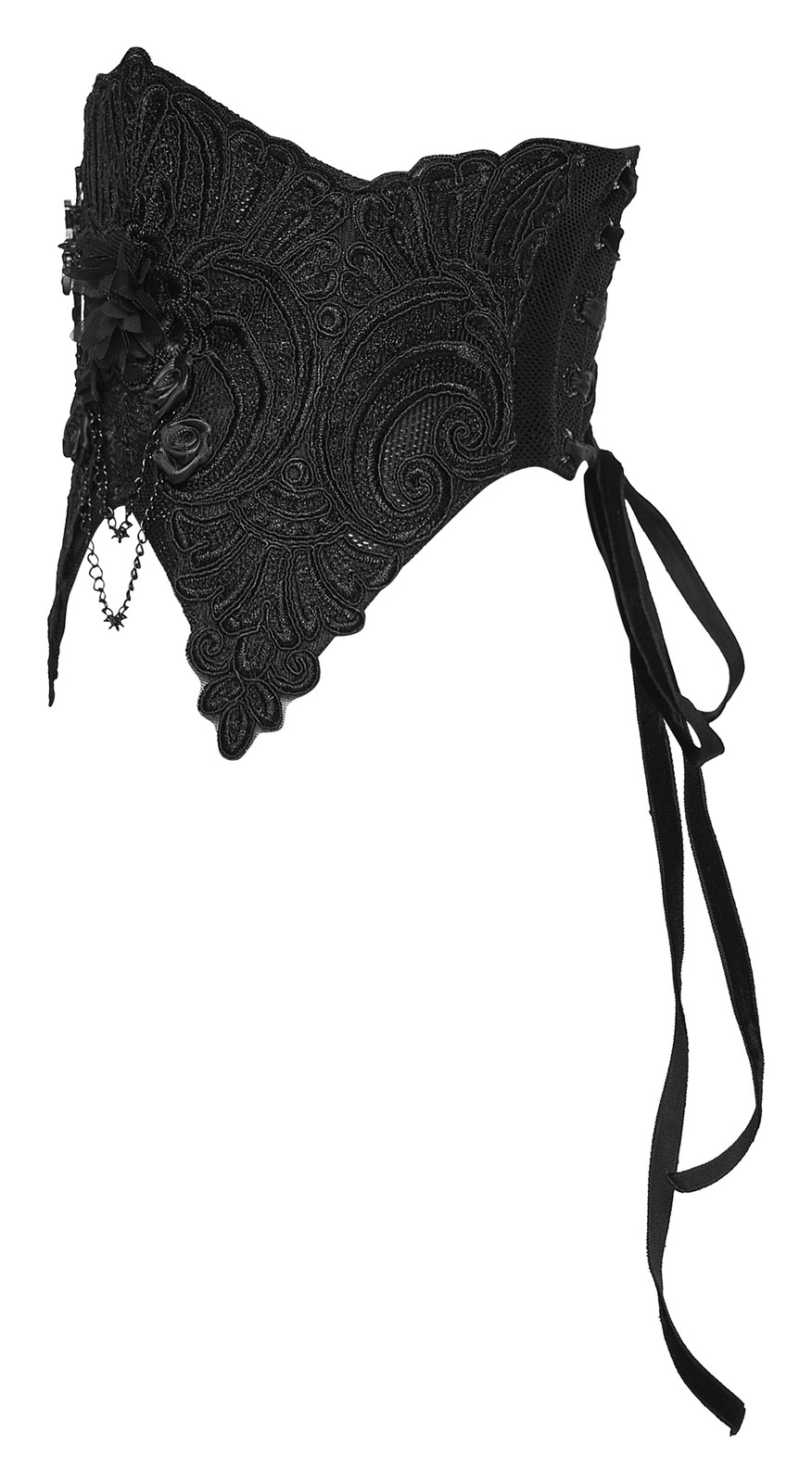 Punk Rave Women Black Gothic Beaded Embroidery Mesh Corset Vintage Waistband