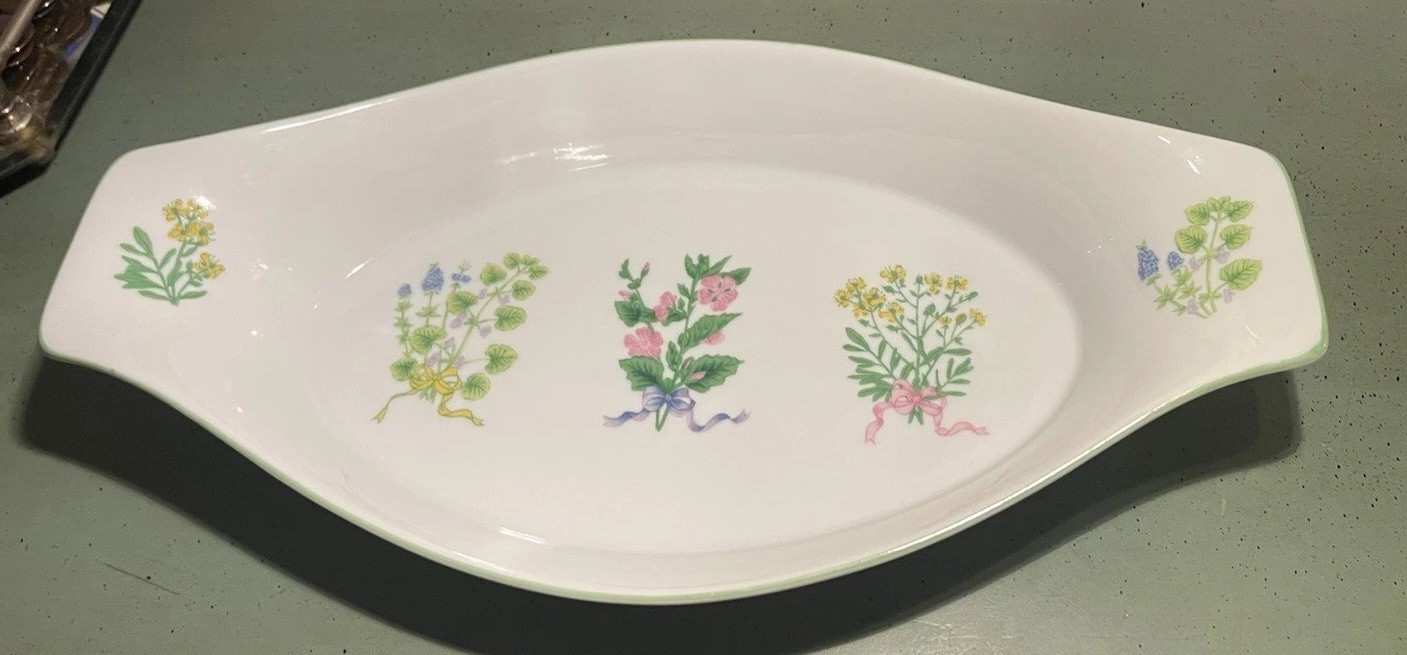 Vintage Shafford Herb Bouquet Fine Porcelain Baking Dish