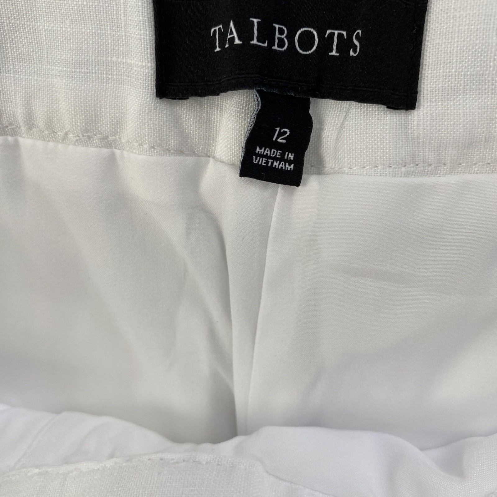 Talbots Cropped Wide Leg Pants Lined White Linen Size 12 With Pockets VN1184