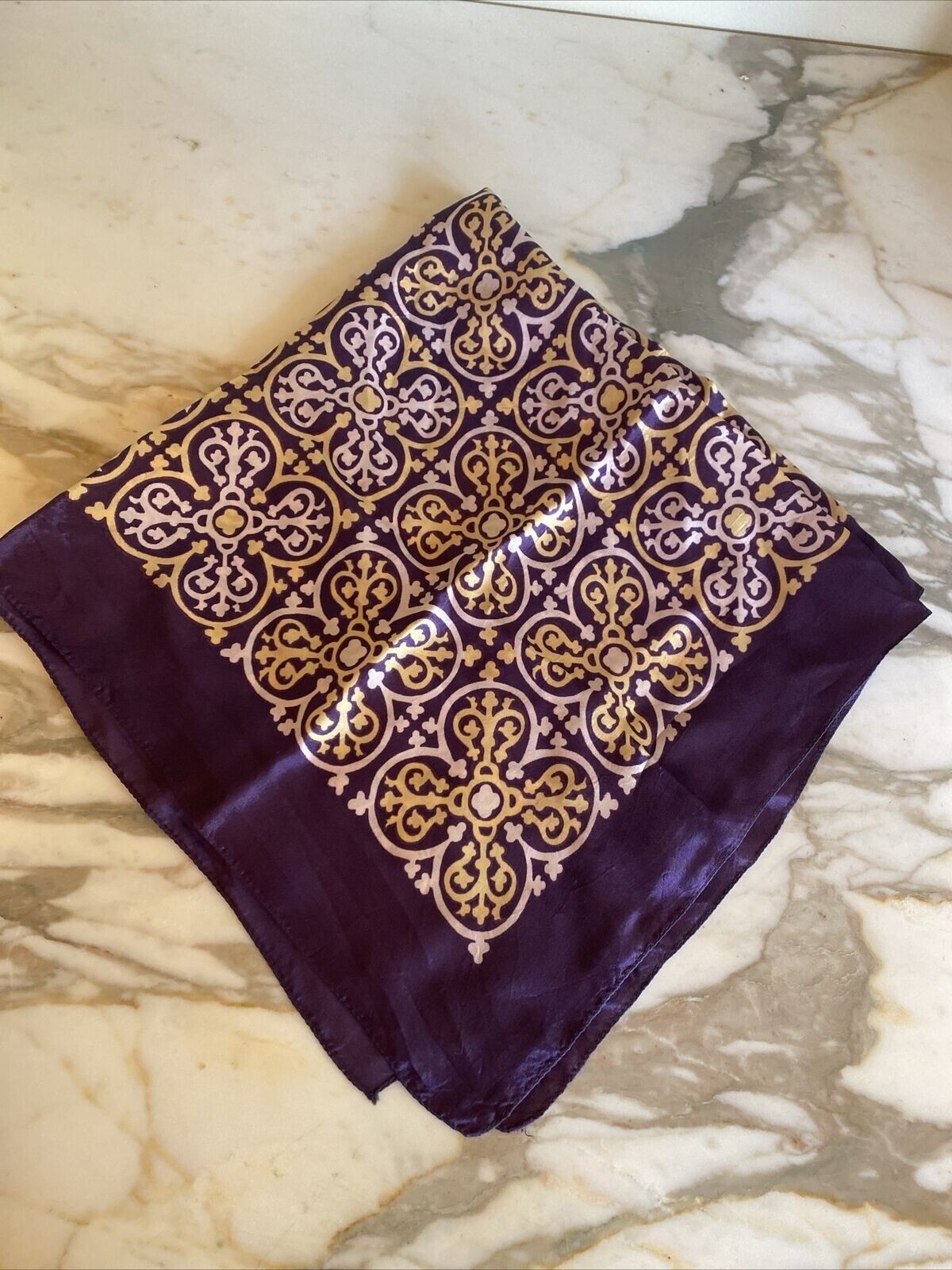 как выглядит Vintage Purple Yellow Graphic Square Scarf фото