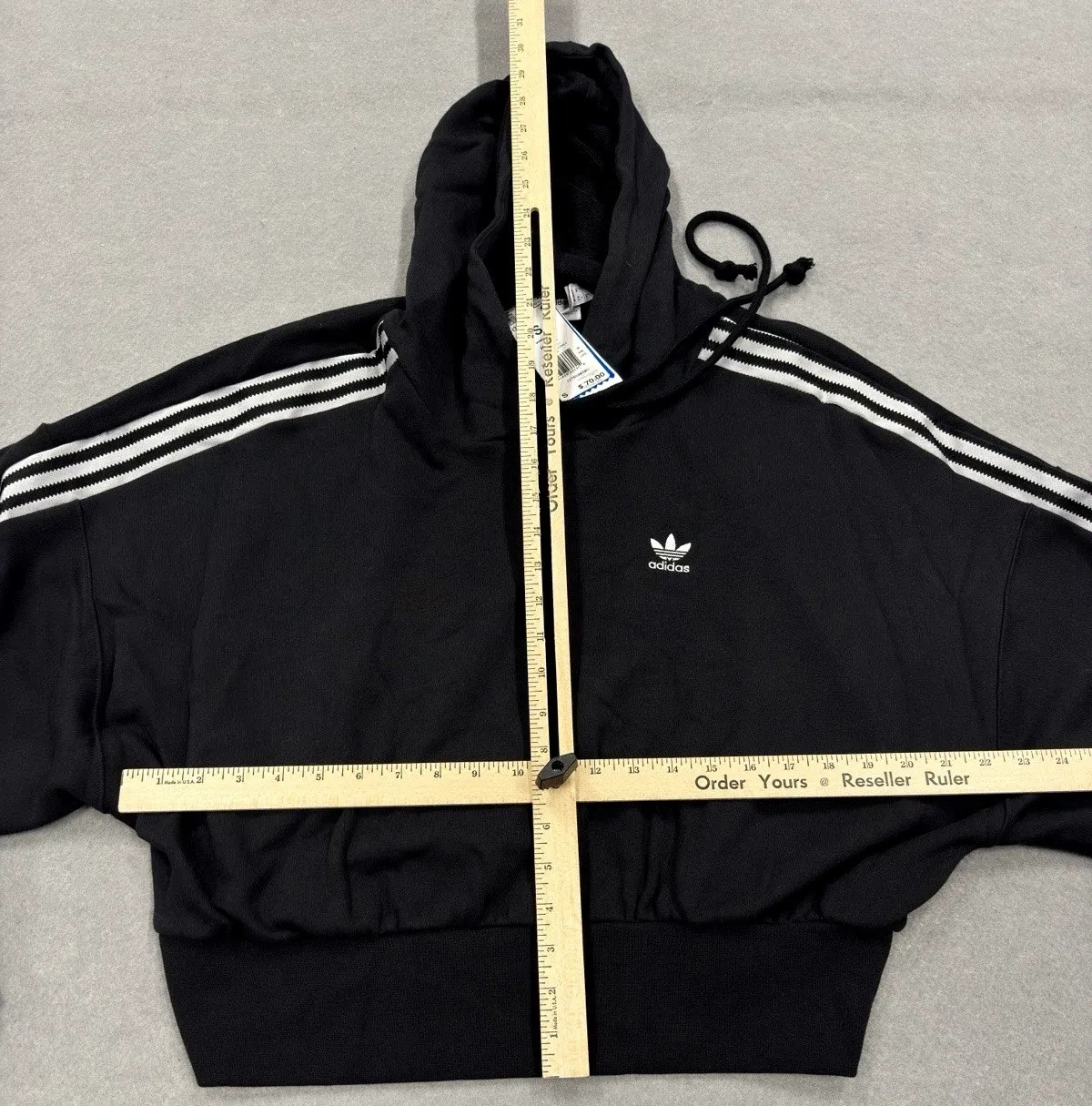 Adidas Originals Hoodie Womens Small Black 3-Stripes Trefoil Cropped NWT 70MSRP