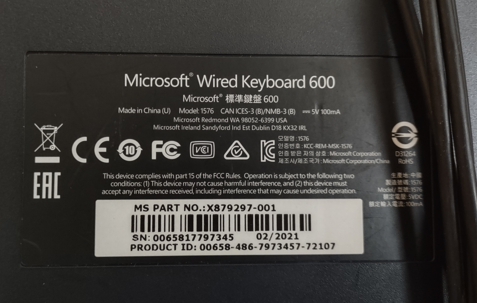 как выглядит COMBO Microsoft Wired USB Keyboard 600 1576 Mouse 200 1405 READ фото