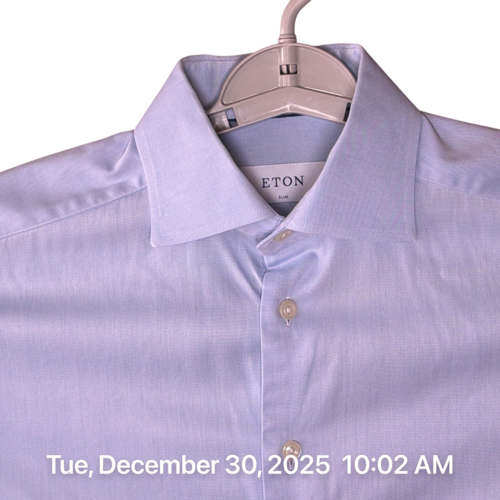 как выглядит Eton Dress Shirt Mens Size 15 x 34 Slim Blue Cotton Long Sleeve фото