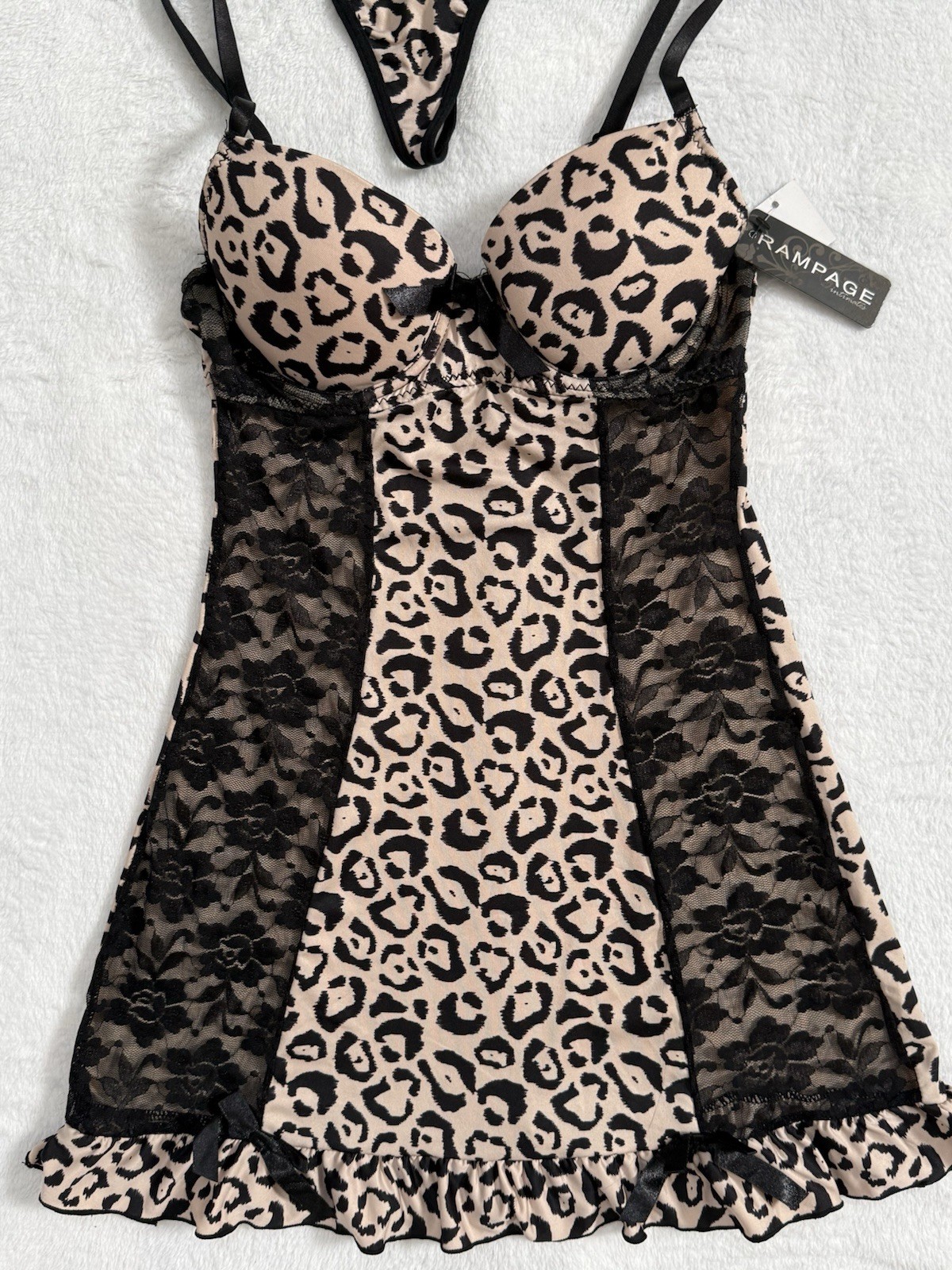 Y2K Rampage Intimates Cheetah Babydoll Set Small Lingerie G string New With Tags