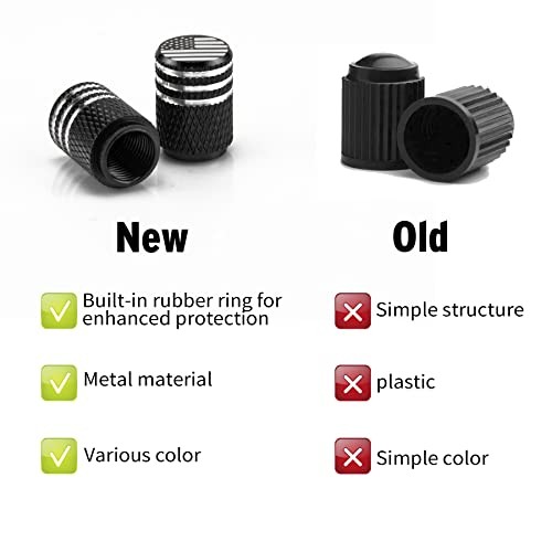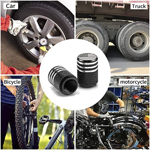 American Flag Valve Stem Cap, 12PCS Aluminum Alloy Rubber Sealed Tire Black