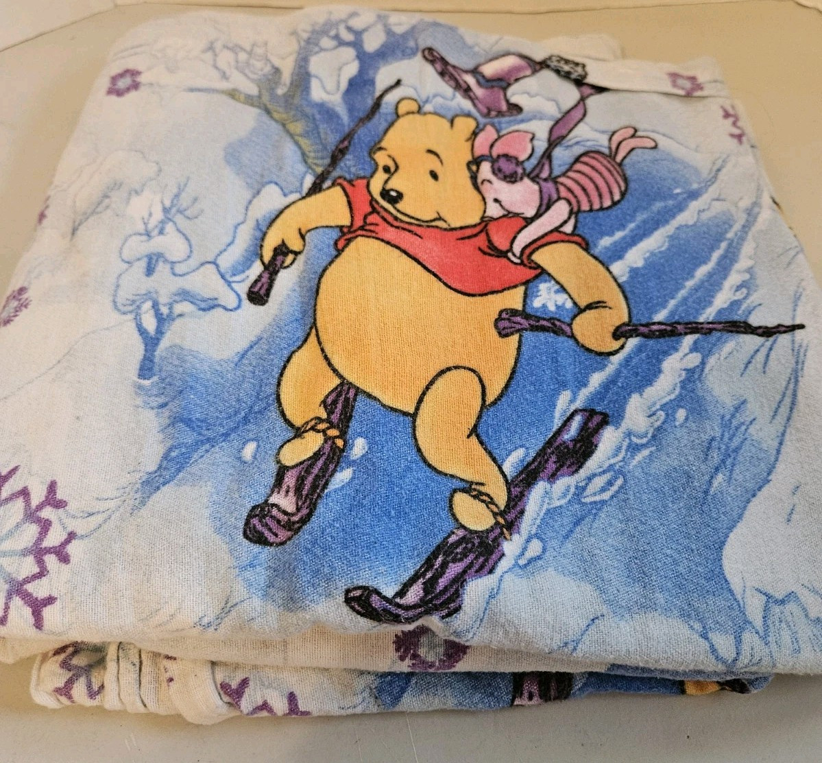 Vintage Disney Winnie The Pooh Blue Flat Sheet Only Twin