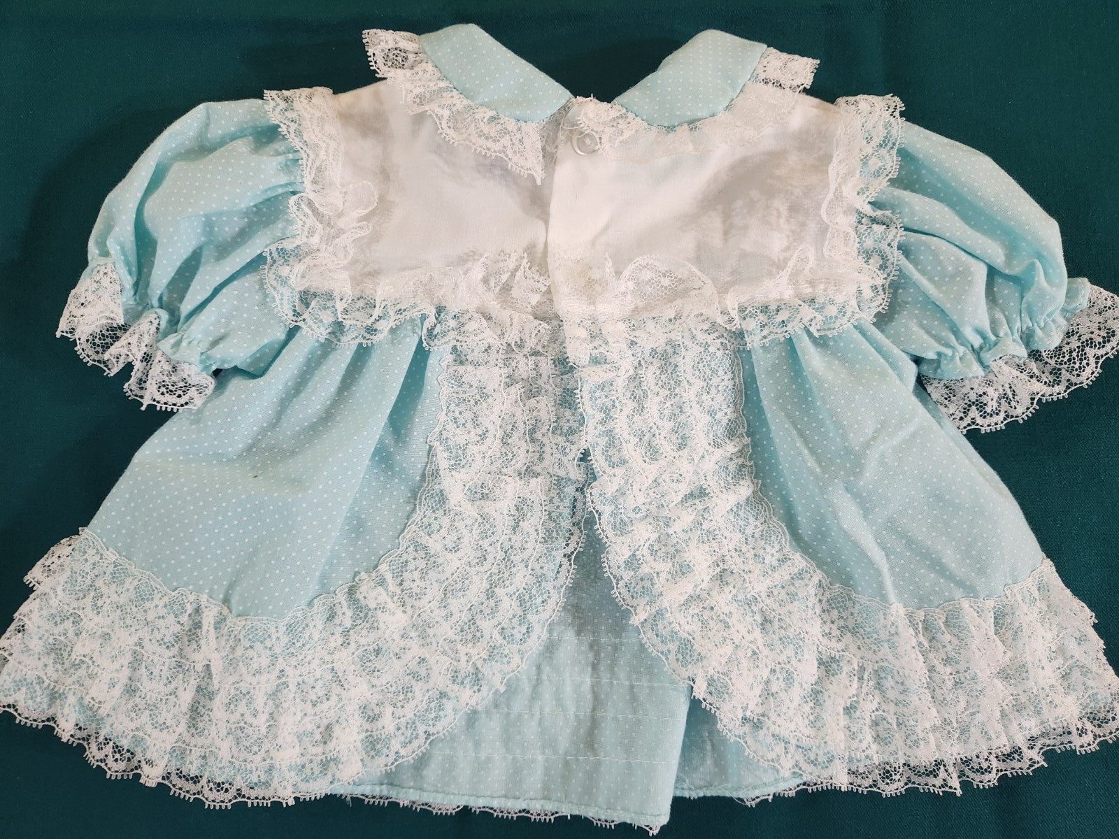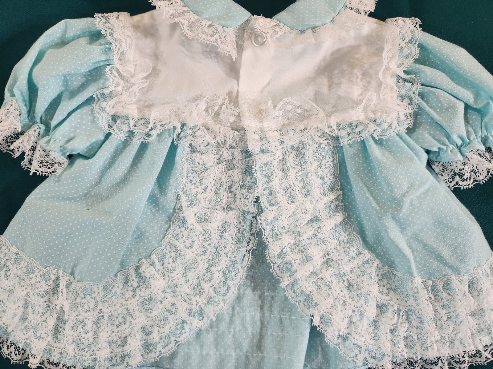 как выглядит Vintage Blue Lace Ruffled Dotted Dress And Bloomers 0-6 months Aqua Blue 1970