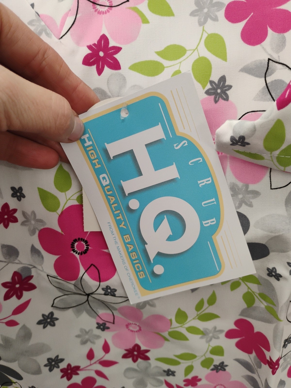Scrub H.Q. SCRUB TOP size Large Pink And Grey Floral Flowers New A22