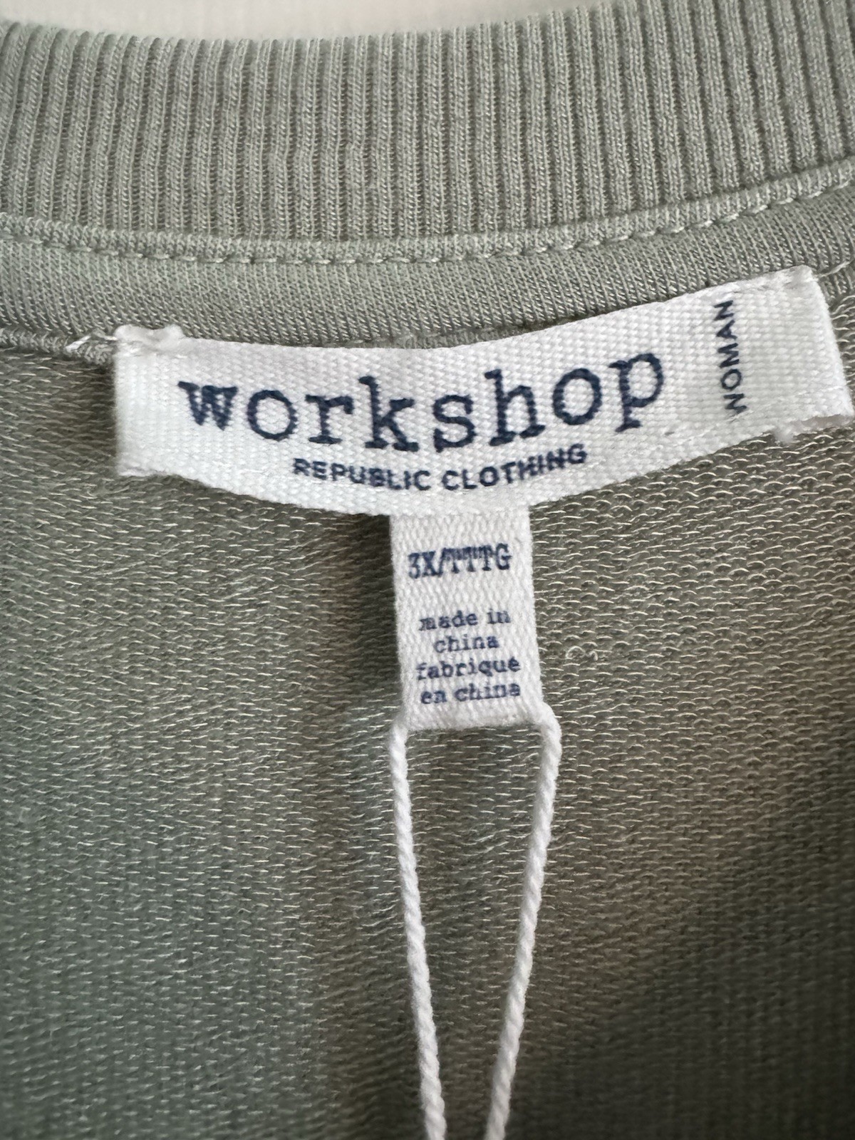 NWT WORKSHOP Republic, Plus 3X, V-Neck Sweatshirt Long Sleeve, Green Comfy 68
