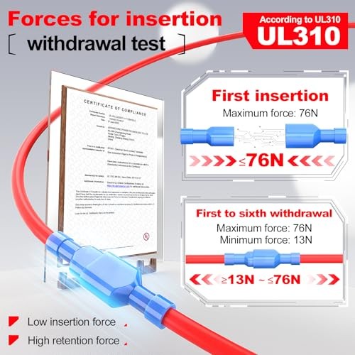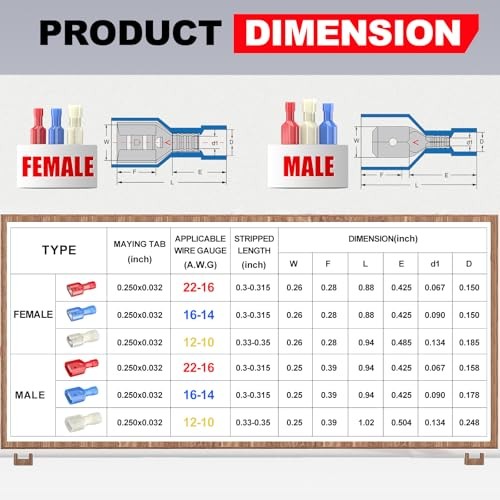 UL Listed Yellow Male Spade Connector 12-10AWG, 100 Pcs Nylon Male 12-10 AWG