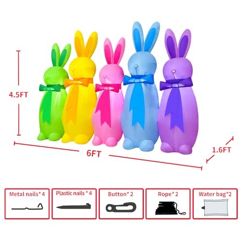 6FT Easter Inflatables Outdoor Decoration Five Colorful Bunny, Built in LED