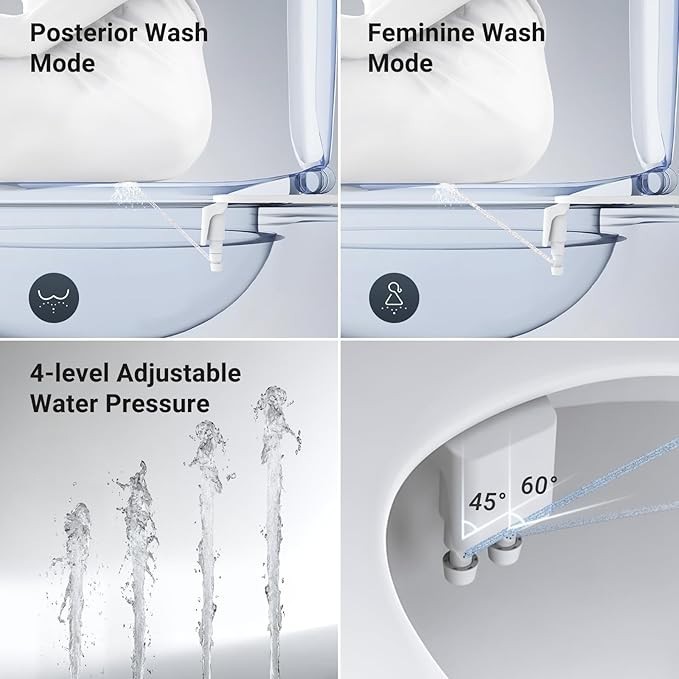 Bidet Non Electric Adjustable Angle Toilet Seat Attachment with Dual Nozzle