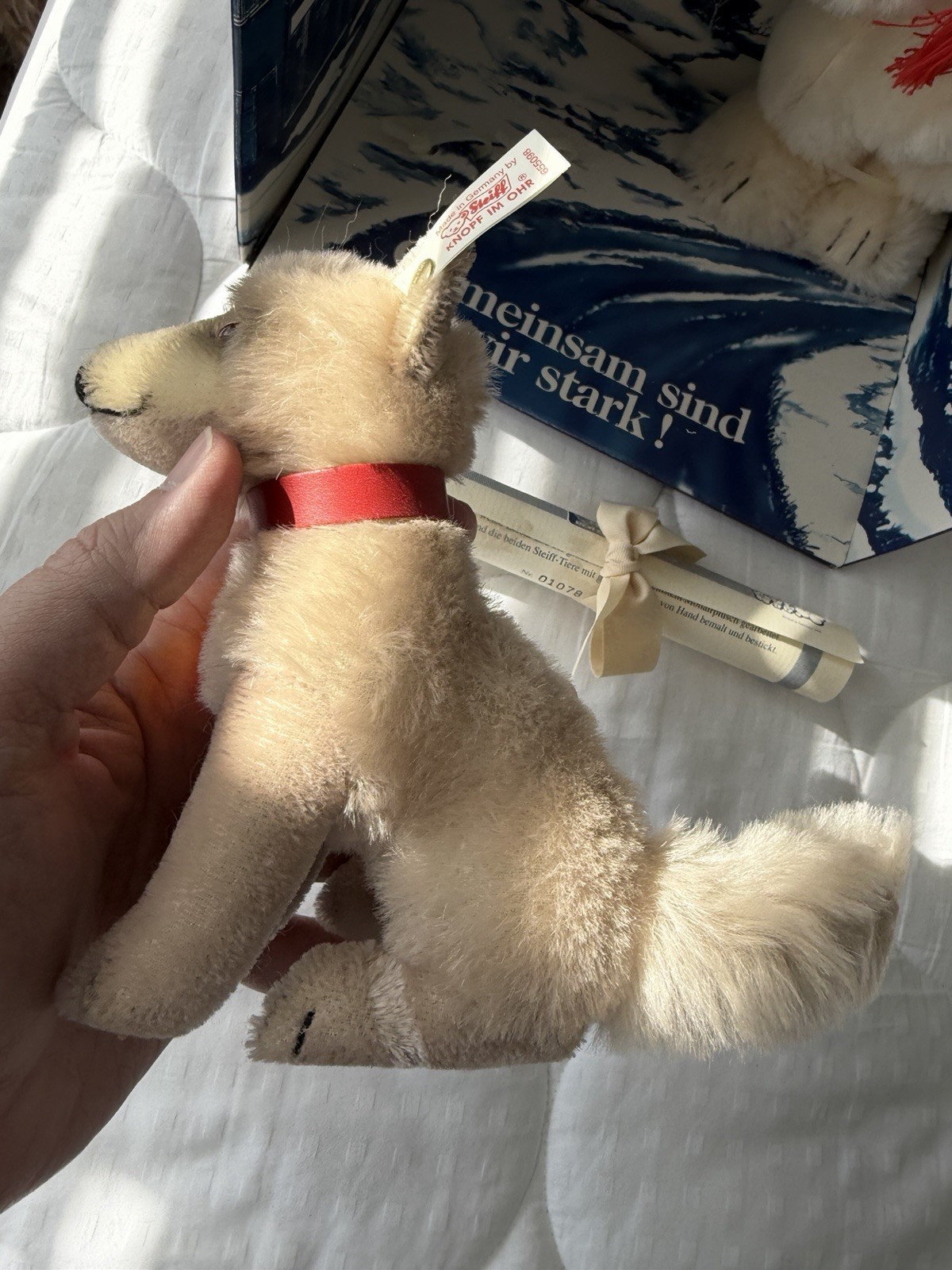 как выглядит Steiff POLAR BEAR and WOLF Set Mohair 12.59" 32cm Eisbar Und Wolf 655098 фото
