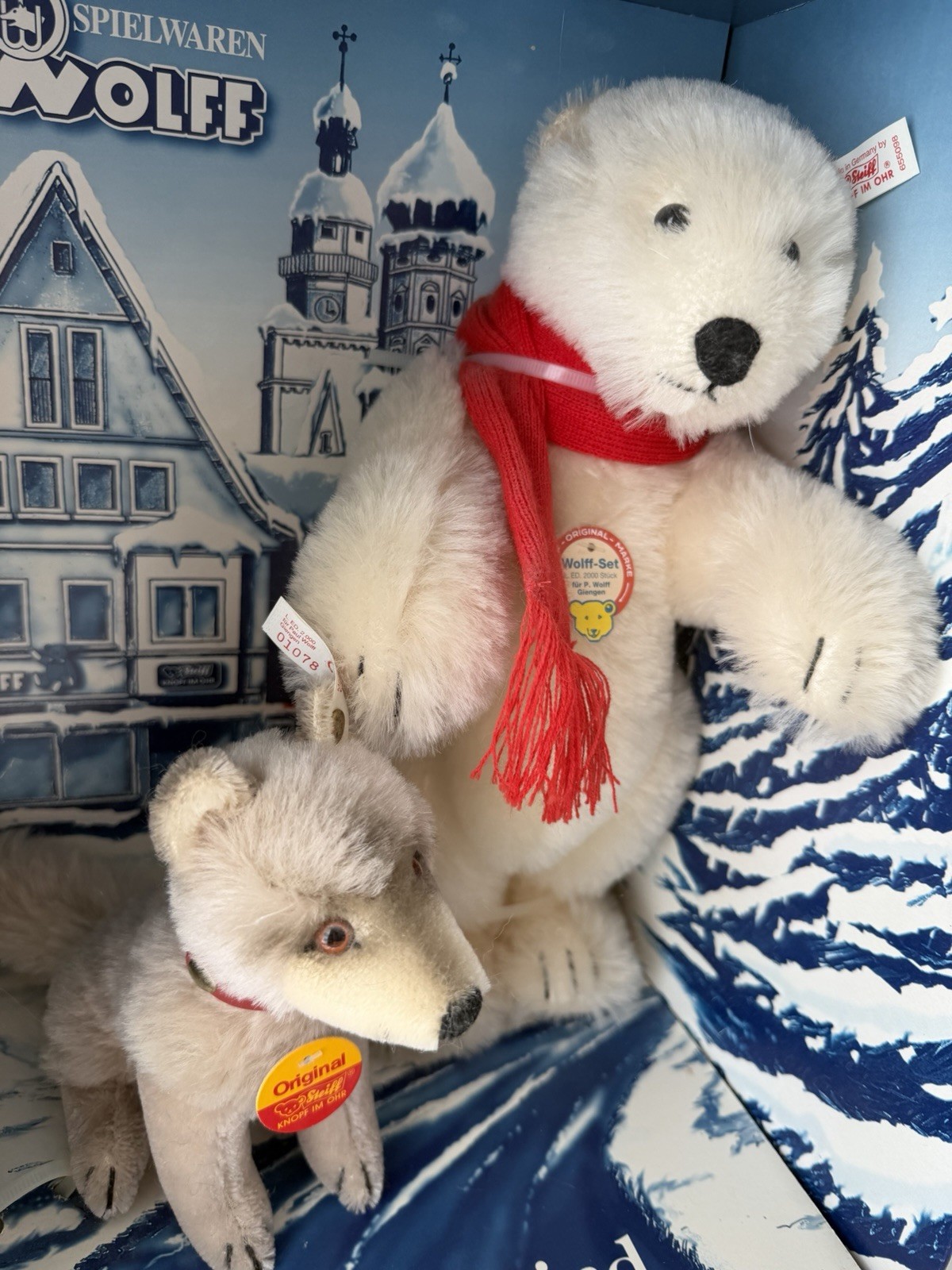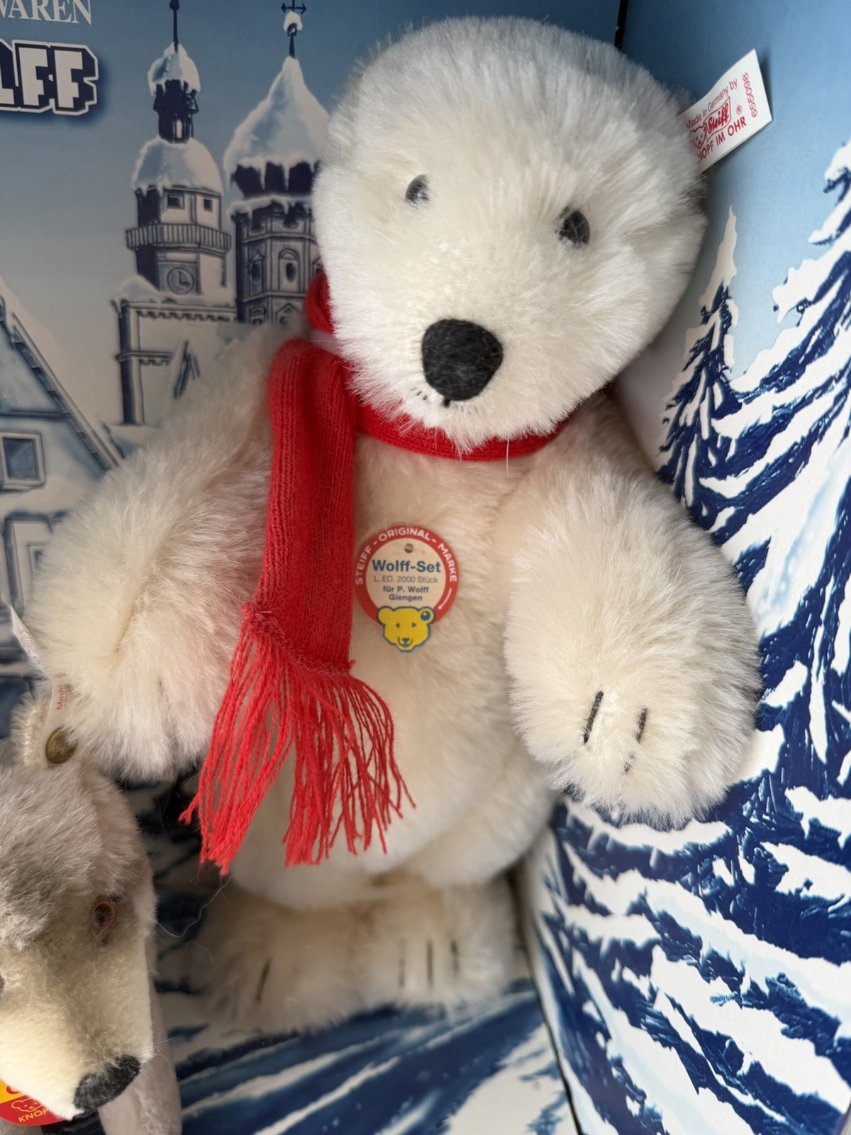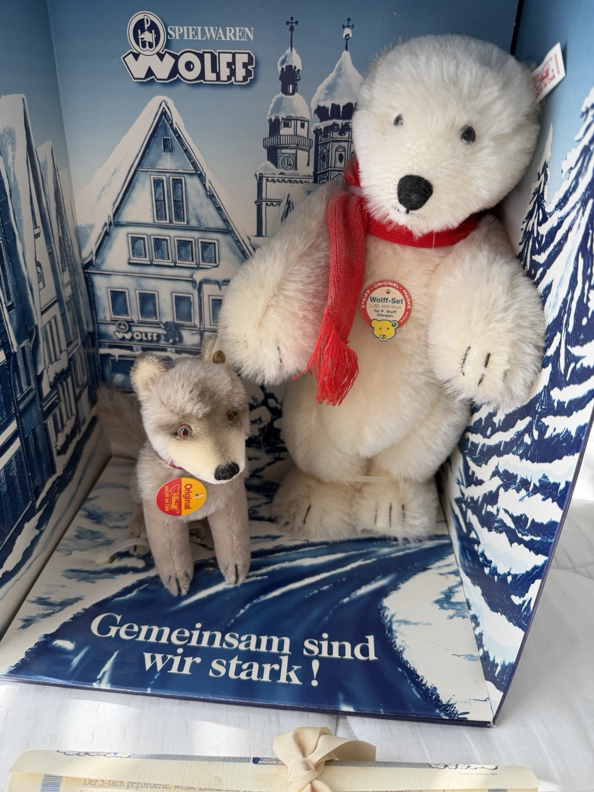 • Steiff POLAR BEAR and WOLF Set Mohair 12.59" 32cm Eisbar Und Wolf 655098