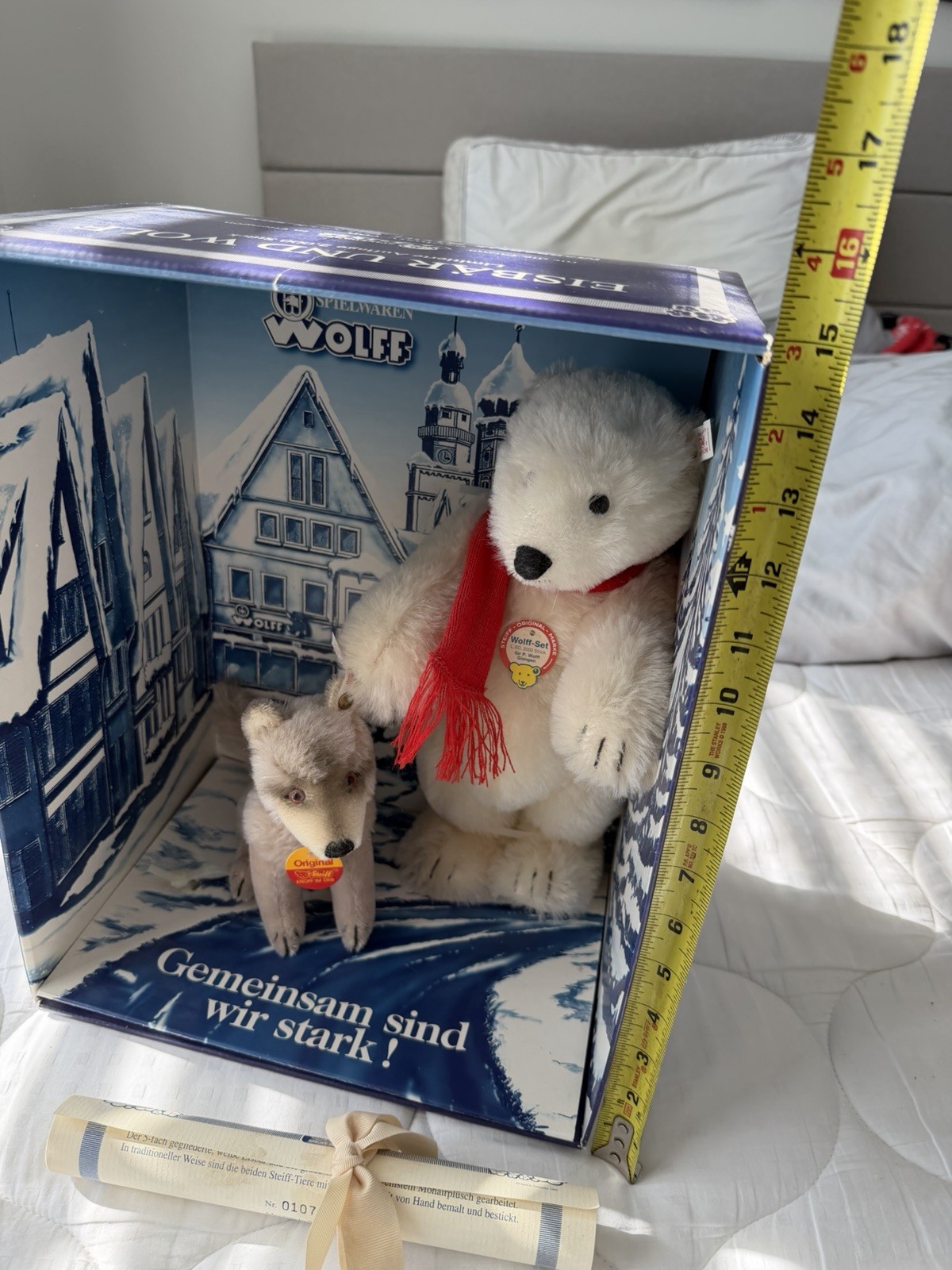 Steiff POLAR BEAR and WOLF Set Mohair 12.59" 32cm Eisbar Und Wolf 655098