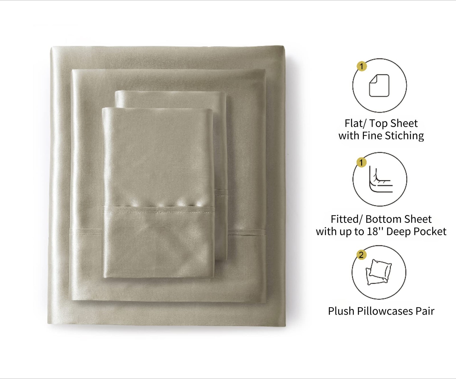 Lanest Housing Silk Satin Sheets, Queen Size Satin Bed Sheet Set with Deep Po...