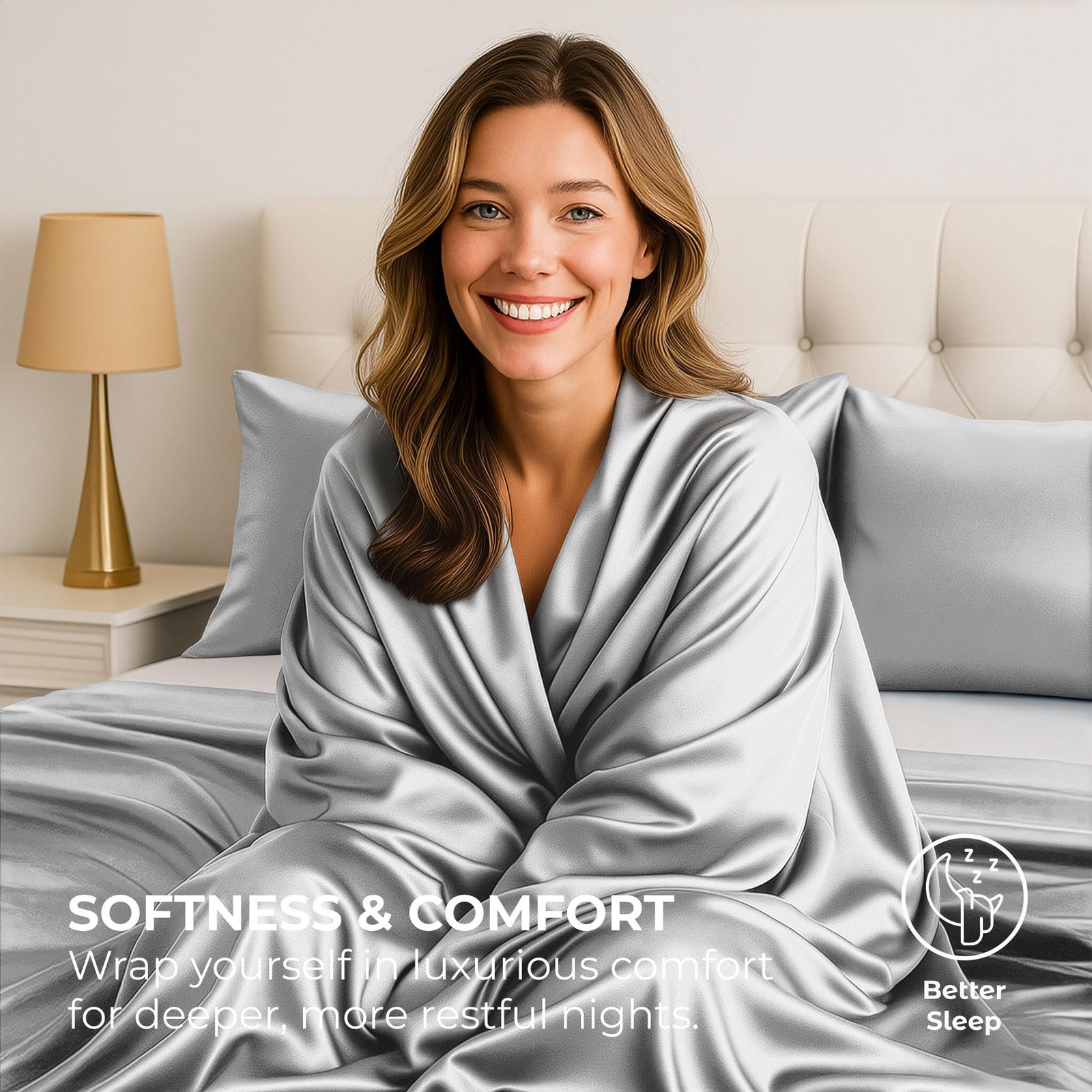 Satin Sheets Queen 4-Piece, Grey Hotel Luxury Silky Bed Sheets - Extra Soft 1...