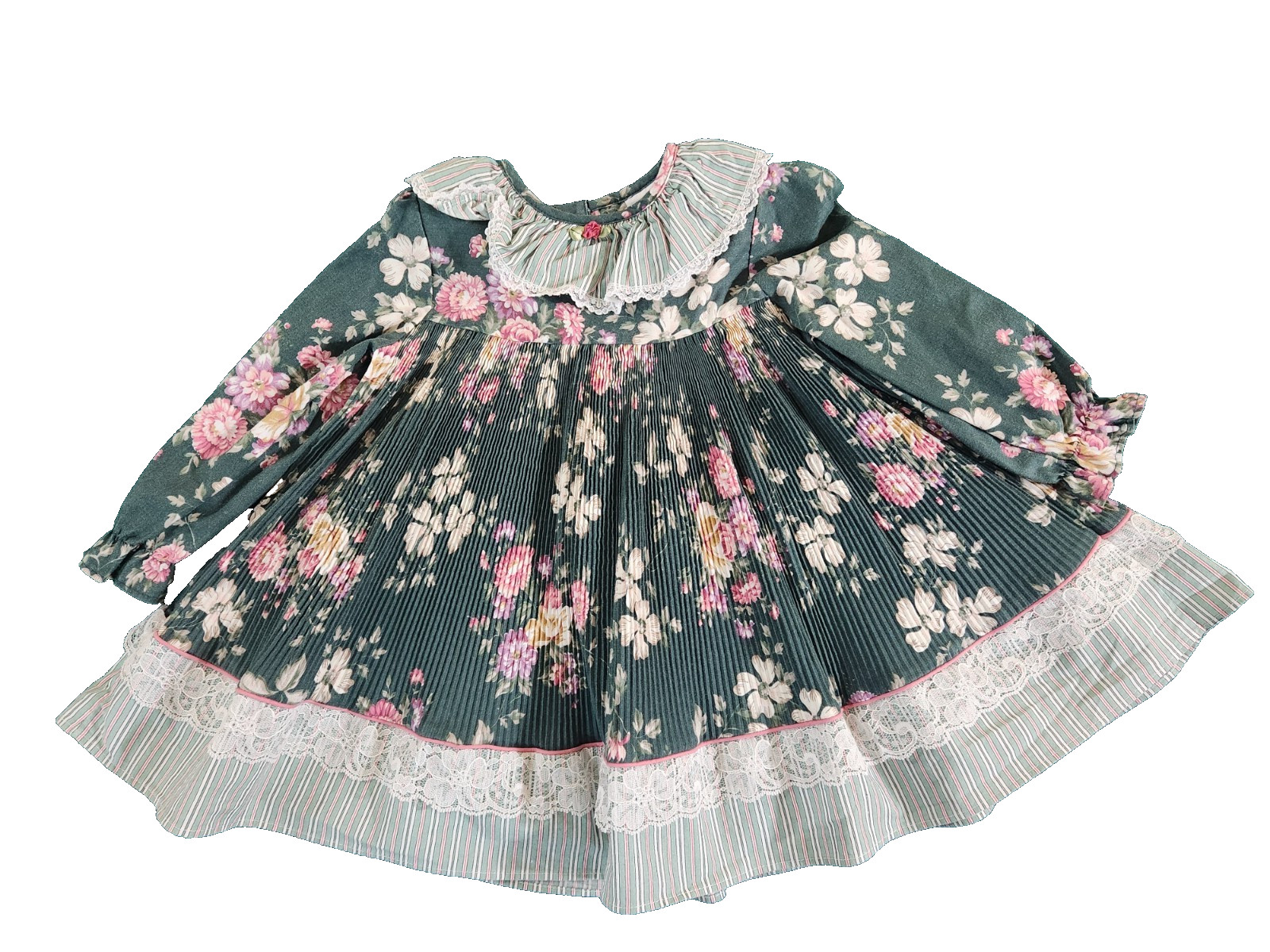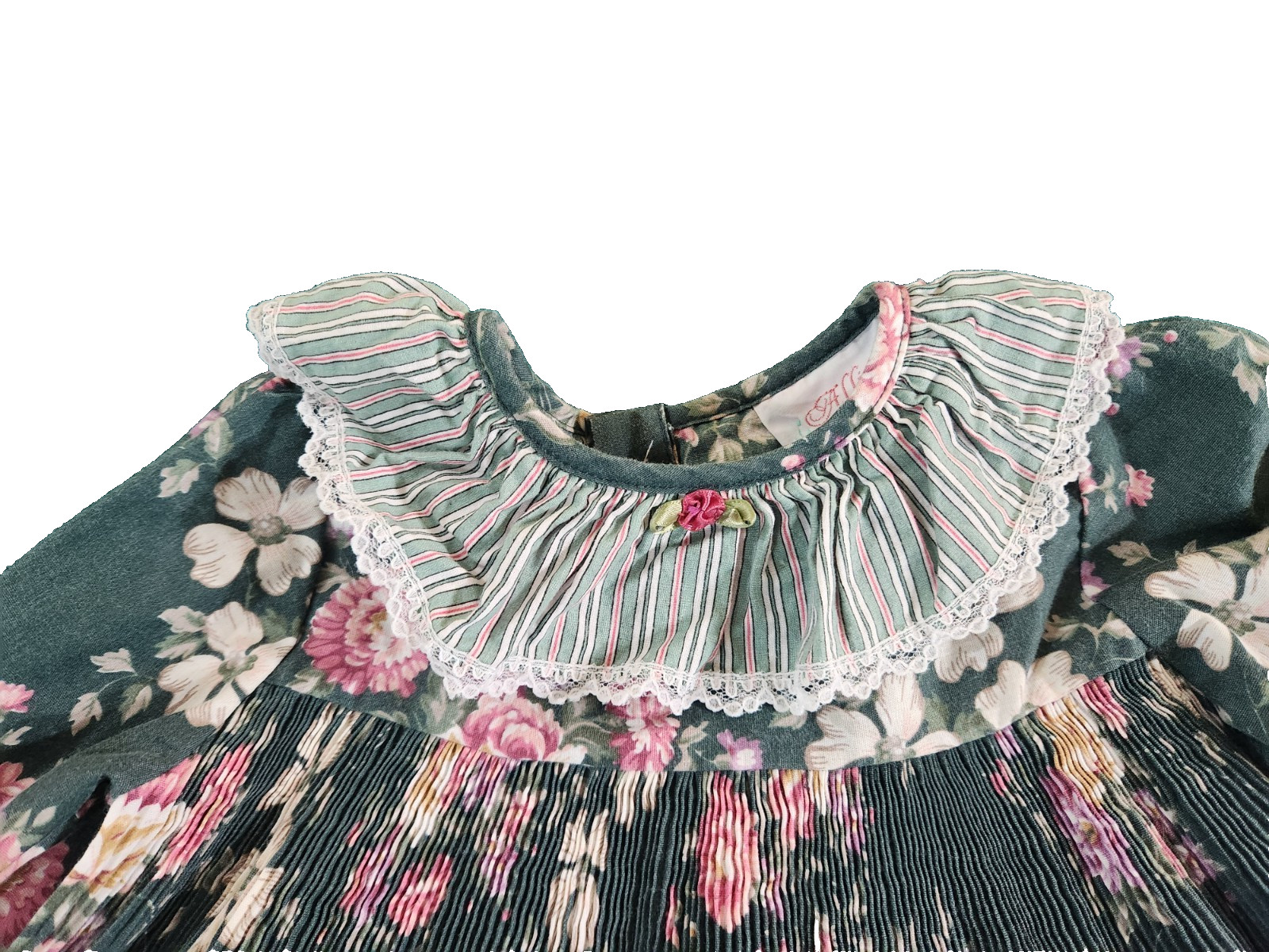 Vintage 1990s Allison Ann Floral Stripes Girls Dress Pleats Collar Cottagecore 3