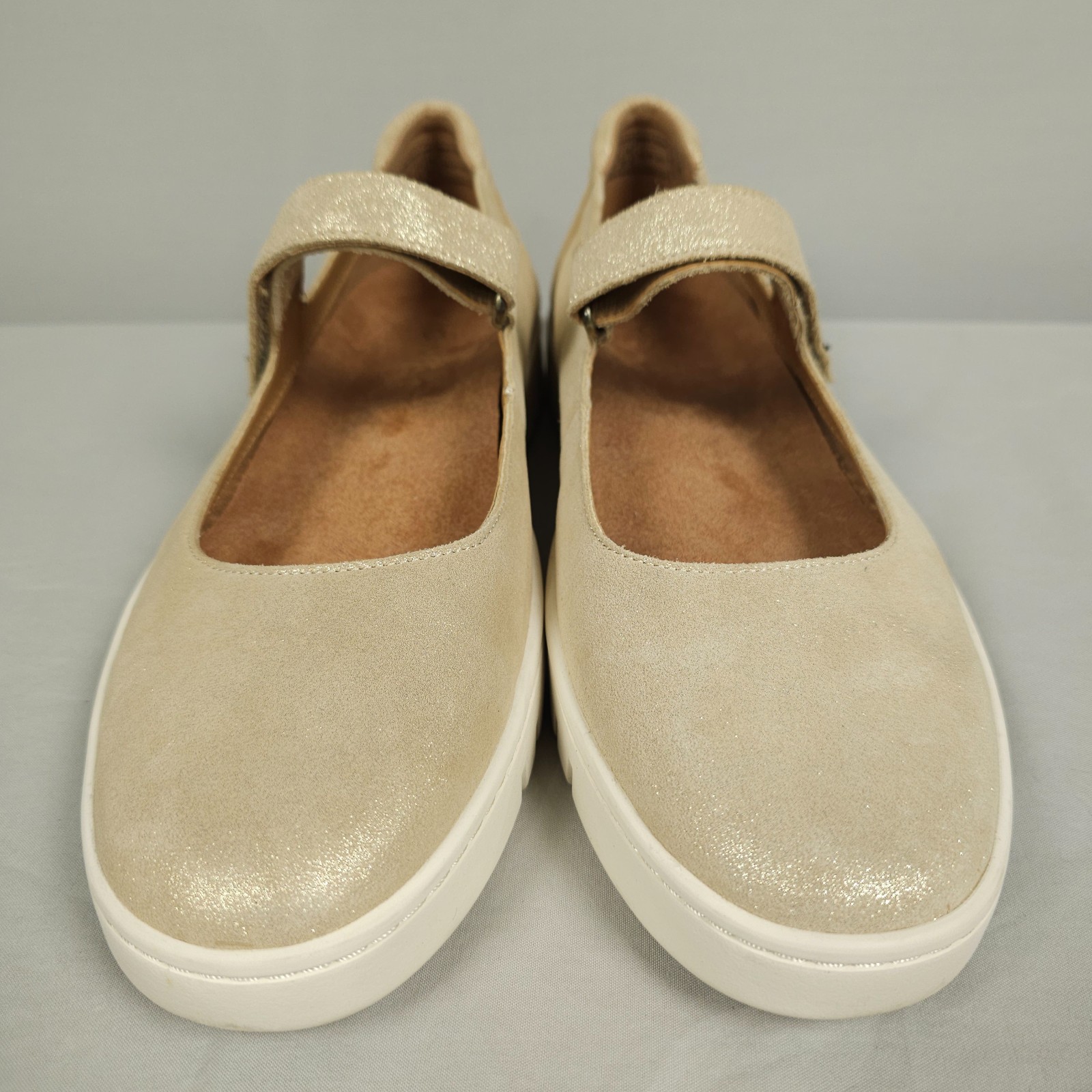 как выглядит Vionic Uptown Mary Jane Shoes Women Size 9 Gold Metallic Leather Slip On Straps фото