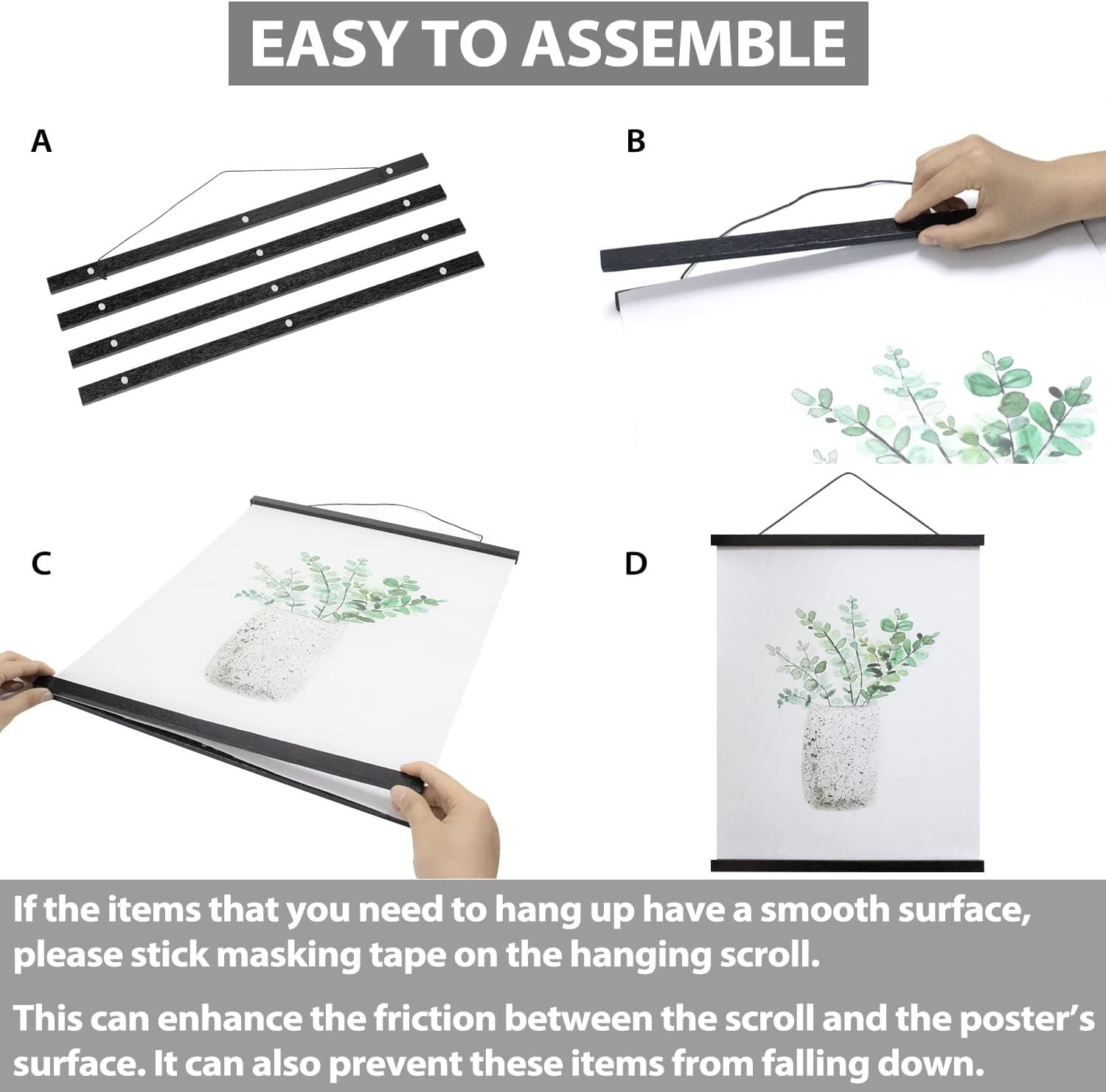 Magnetic Poster Hanger Frame for 48x36 48x32 48x24 Movie Music 48 Inch Black