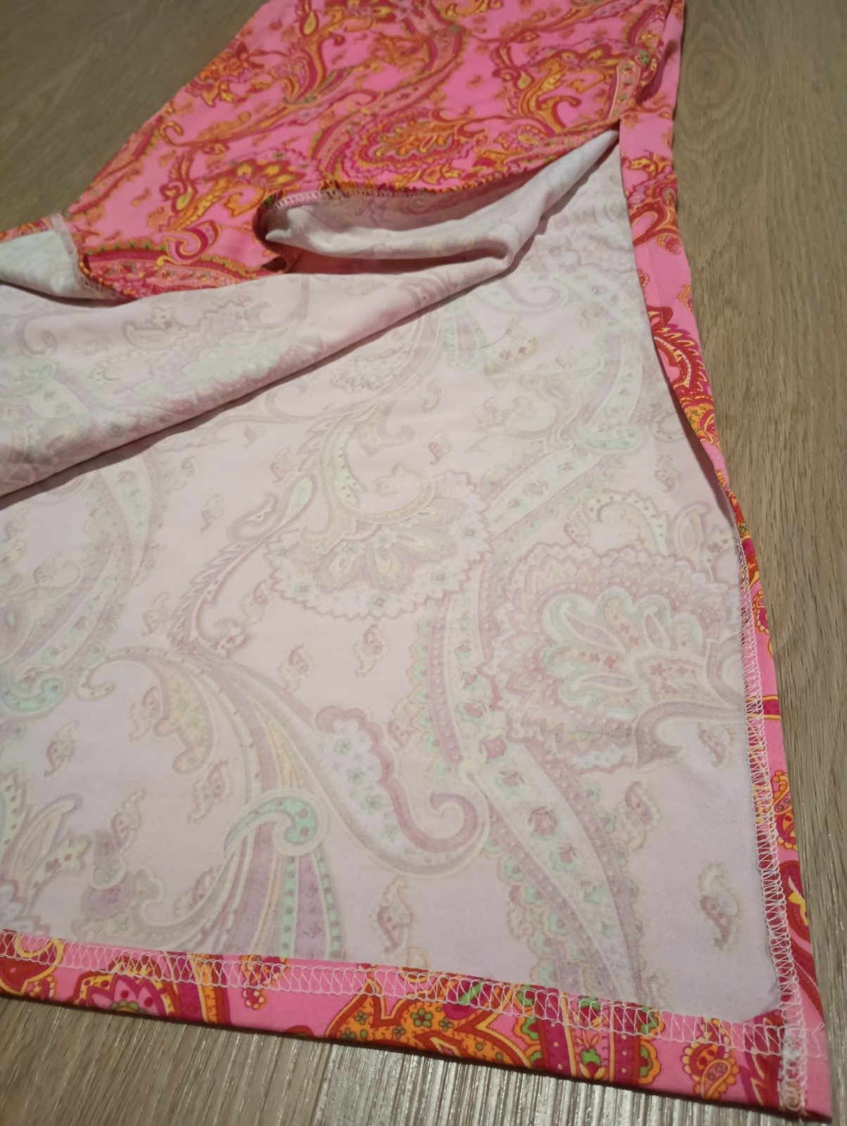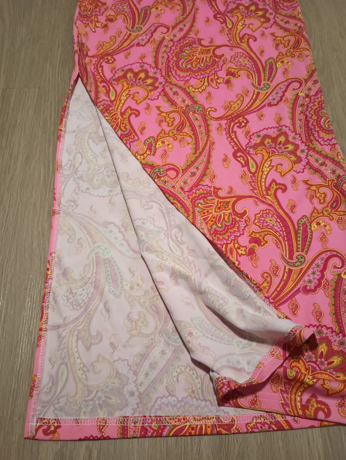 как выглядит Vtg 90s Stretch Pink PAISLEY India Boho Hippie Side Slit Maxi Skirt XS фото
