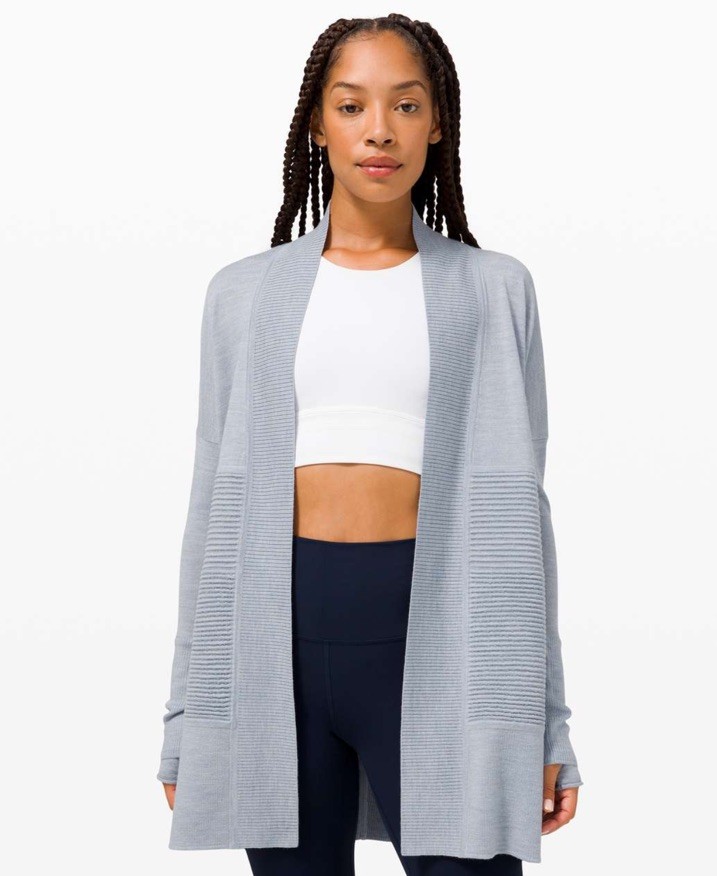 Lululemon Sit In Lotus Wrap II 100 Merino Wool Cardigan Cool Grey Women Sz 4
