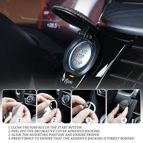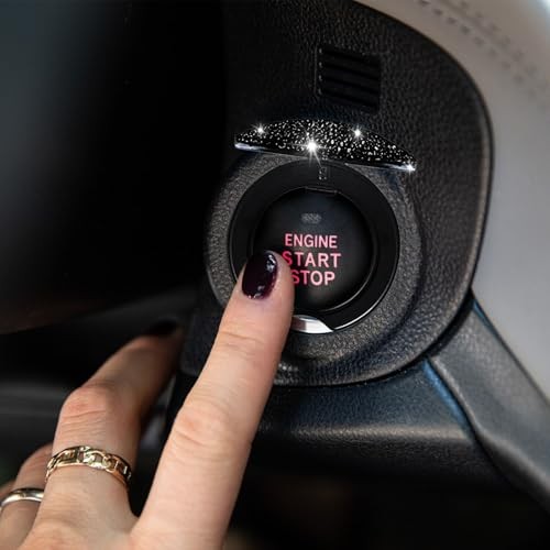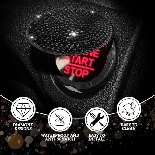 Bling Car Push to Start Button Cover - Crystal Rhinestone Anti-Scratch Black