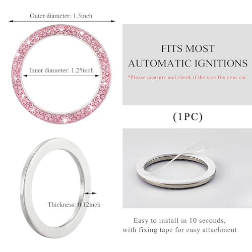 Car Bling Engine Start Ring Decal, Sparkling Crystal Rhinestone Auto 1 PC Pink