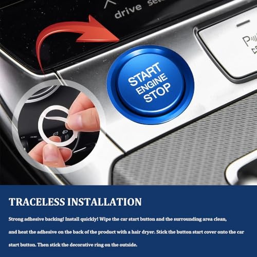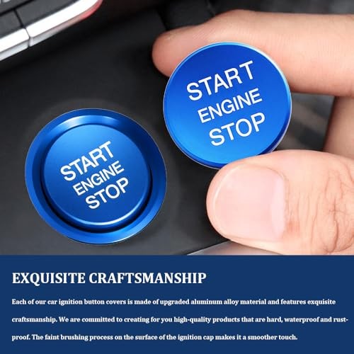Car Push Start Button Cover, Start Stop Button Cover, Aluminum Auto Key Blue