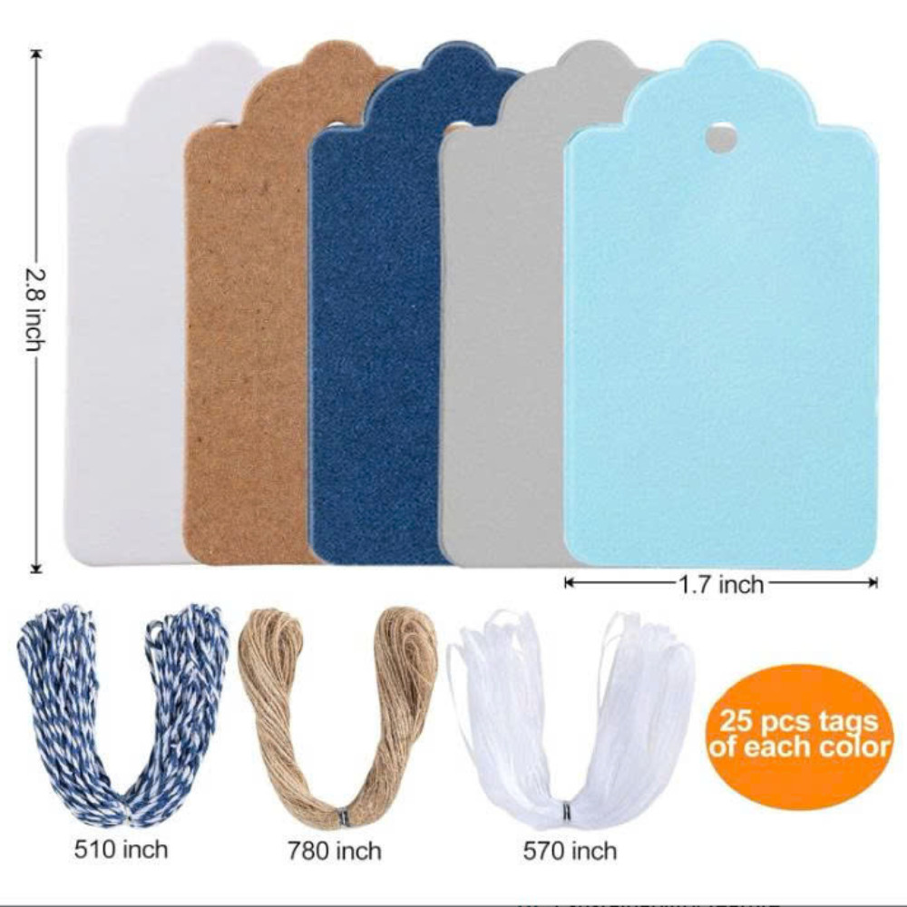 125 Pcs Premium Gift Tags, 5 Colors Kraft Paper Tags with String, Double-Sided A