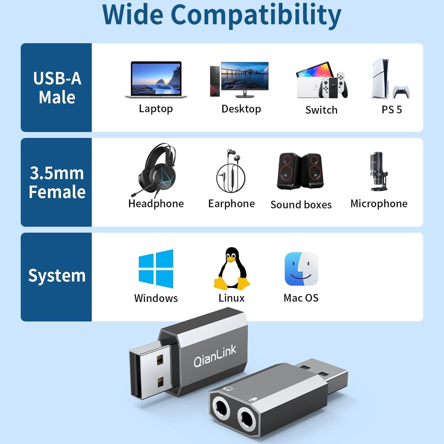 как выглядит USB to 3.5Mm Audio Adapter 2-Pack ,External Stereo Sound Card with Dual TRS ... фото