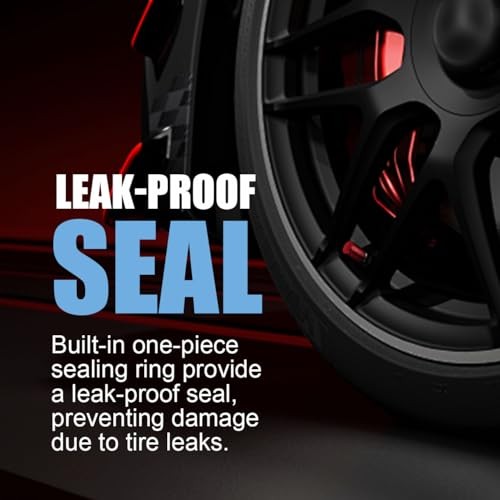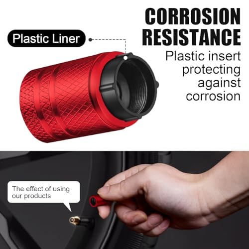 Tire Valve Stem Caps - 5 Pack Metal Air Caps with Plastic No Pattern Red