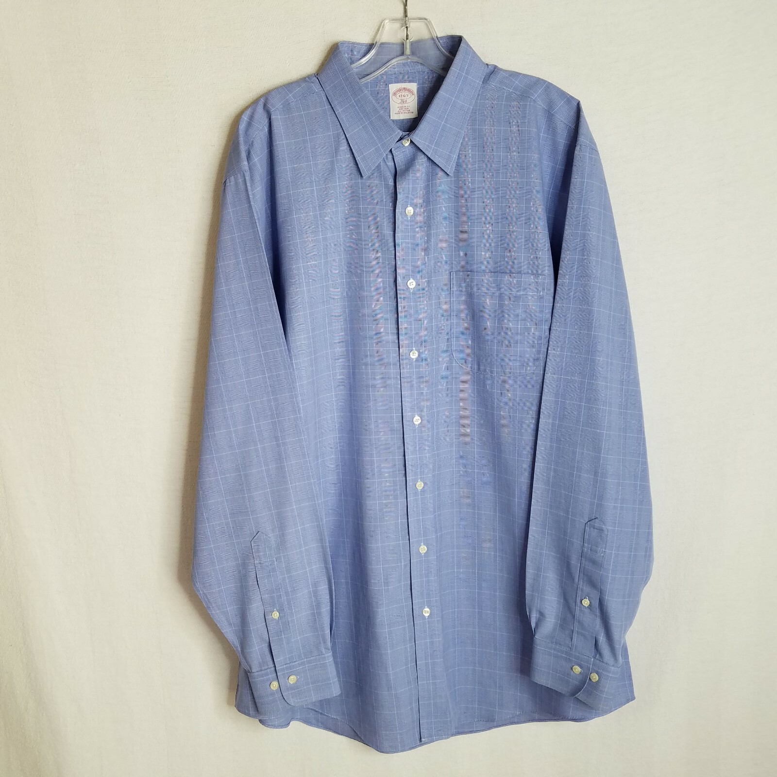 Brooks Brothers 346 Mens Blue Plaid Button Front L/S Dress Shirt Sz 17-6/7 SD722
