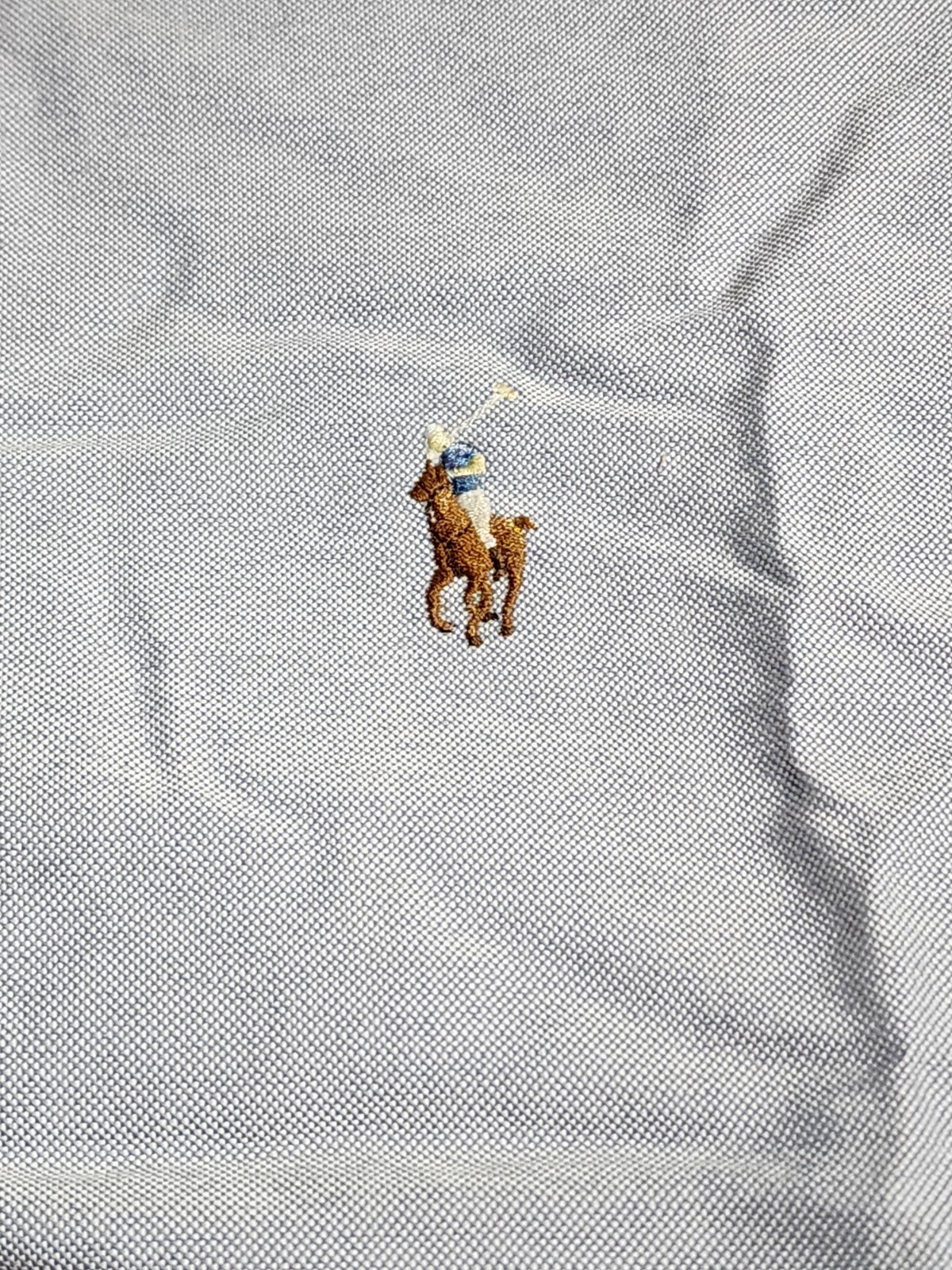 Ralph Lauren Shirt Men Size 16-32 Blue Yarmouth Oxford Button Up Flesh Pony VTG