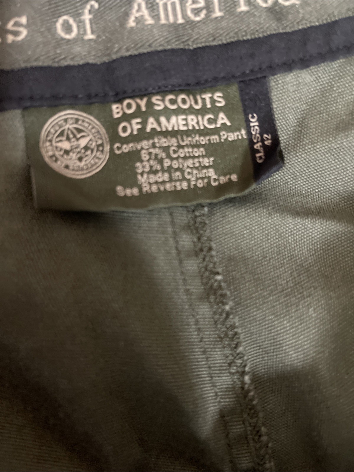 Boy Scouts of America Green Cargo Pants Zip to Shorts Size 42 Waist 28 Inseam
