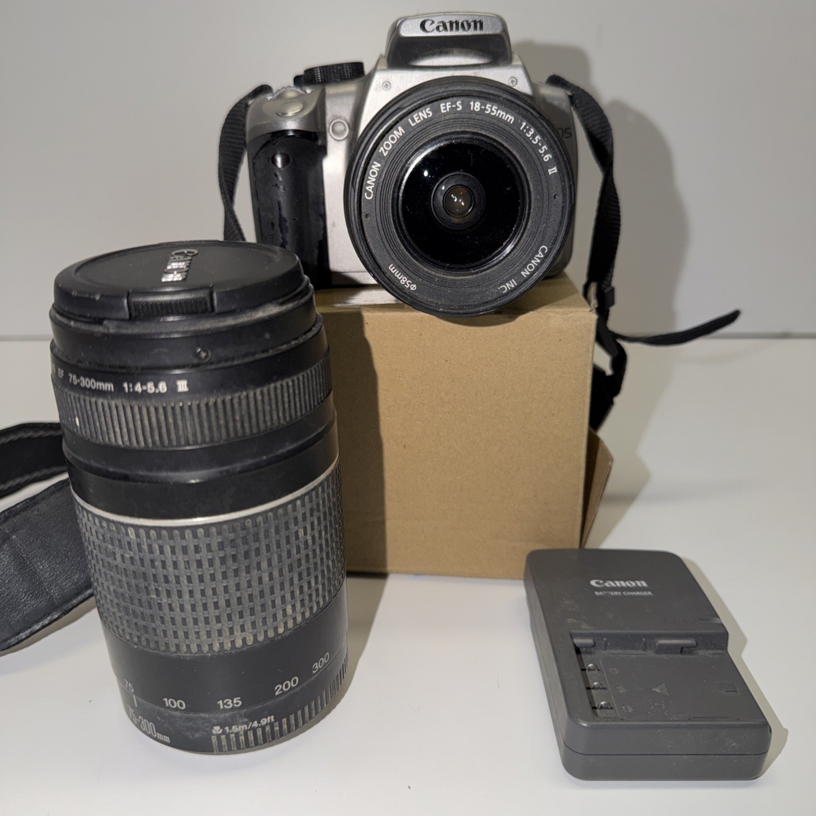 CANON EOS DIGITAL REBEL XT DSLR CAMERA EF-S Lens 18-55mm W Battery Works Great