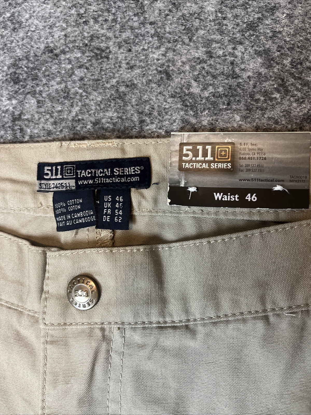 5.11 Tactical Pants Khaki Cargo Mens 46 Unhemmed Utility 74251