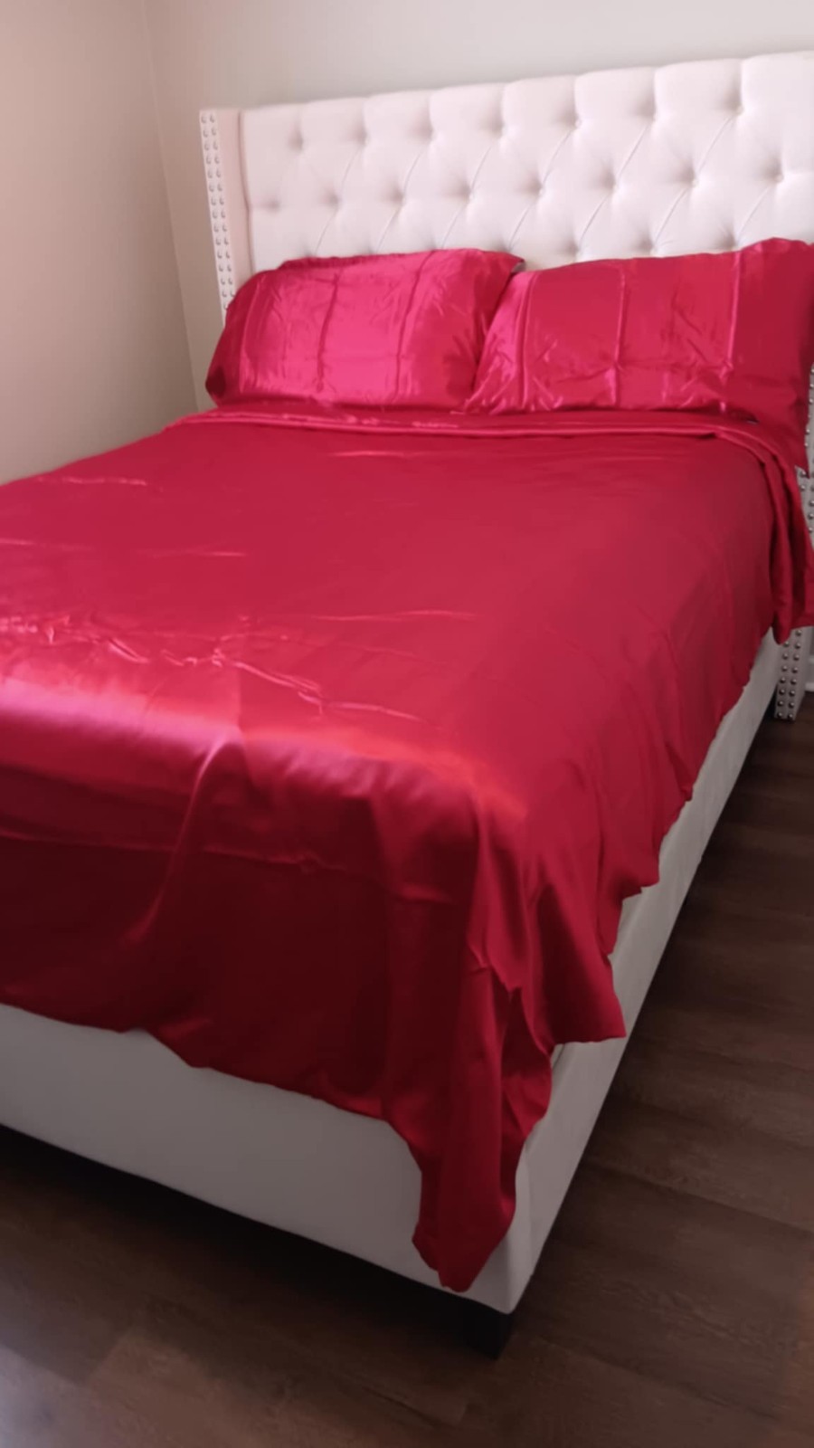 New Queen/King Size 7-Pcs. Red Black Satin Duvet Cover Bedding Set