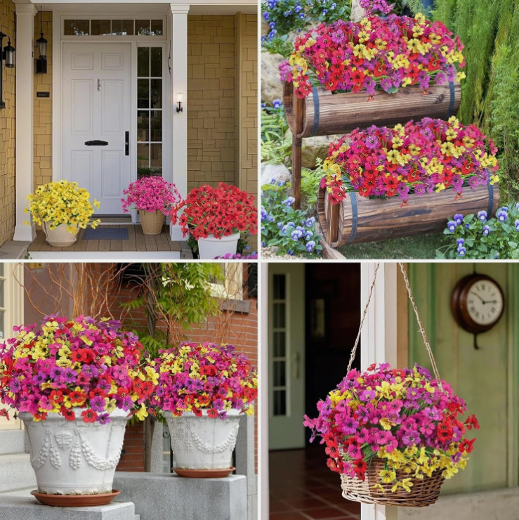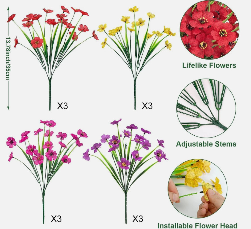 Value-12 Bundles Artificial Flowers for Outdoors 4 Colors Fake Flowers UV Resist