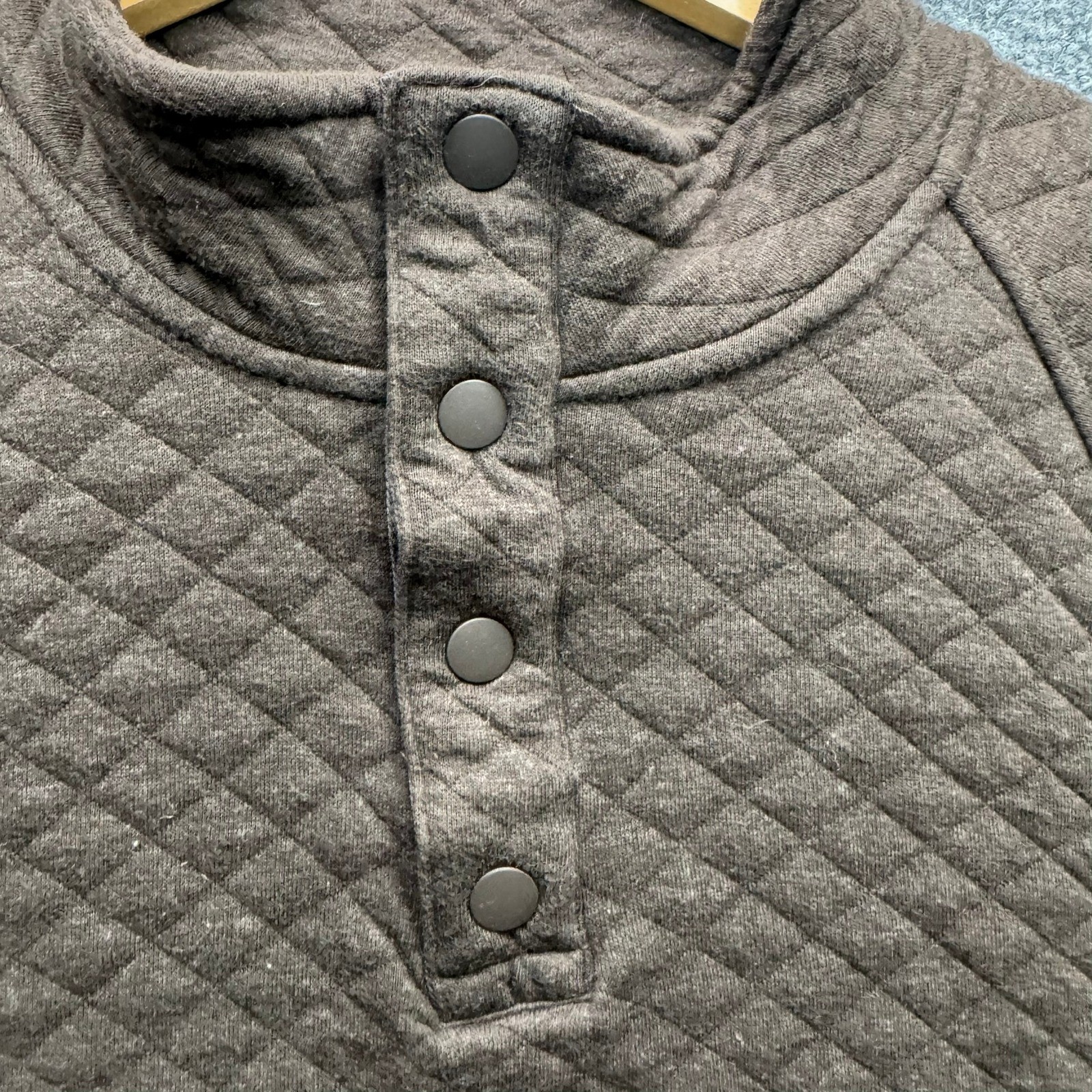 как выглядит Eddie Bauer Quilted Pullover Sweatshirt Mens Size XXL Brown Snap Neck Casual фото