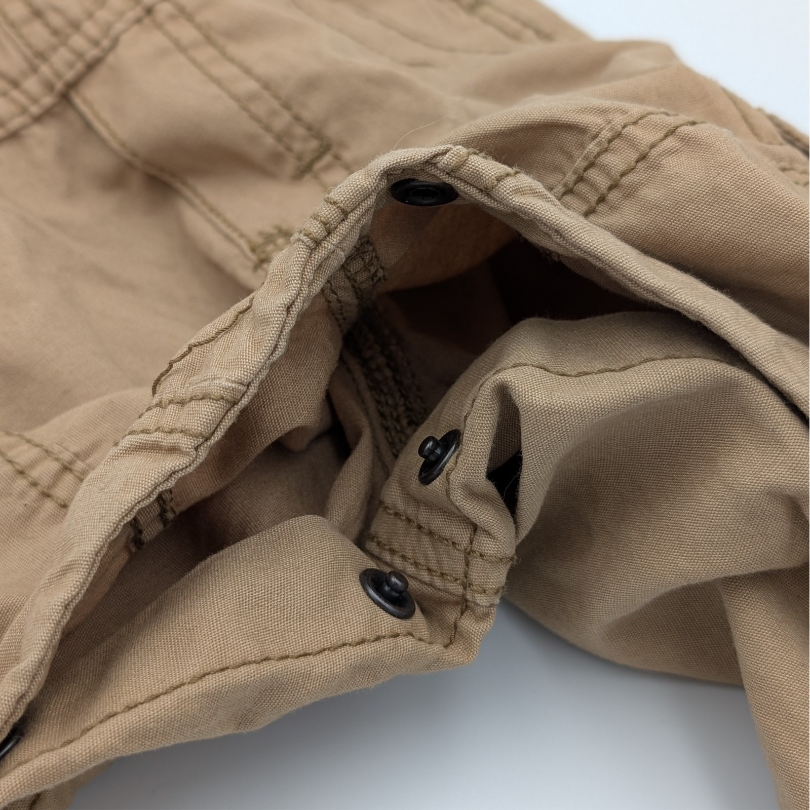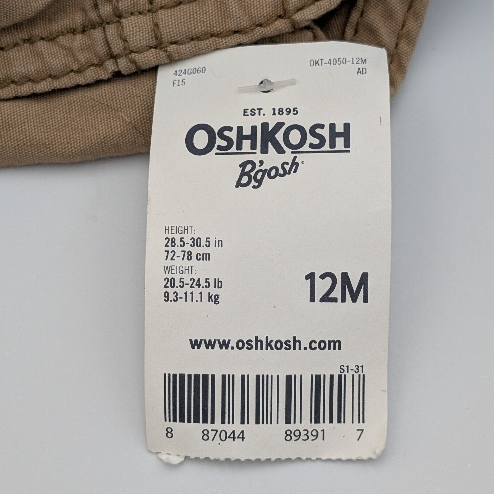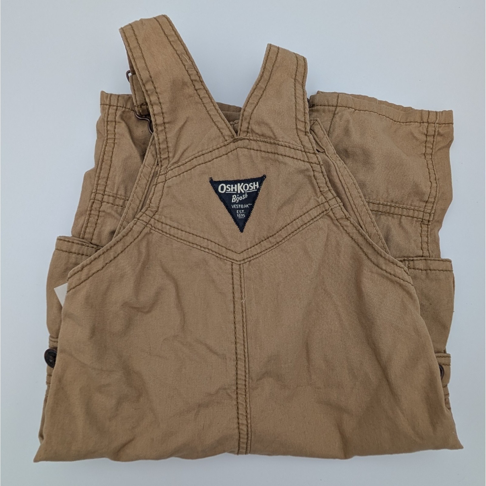 OshKosh B'gosh Baby Boy Vestbak Tan Canvas Overalls 12M Khaki Bib Pockets Snap