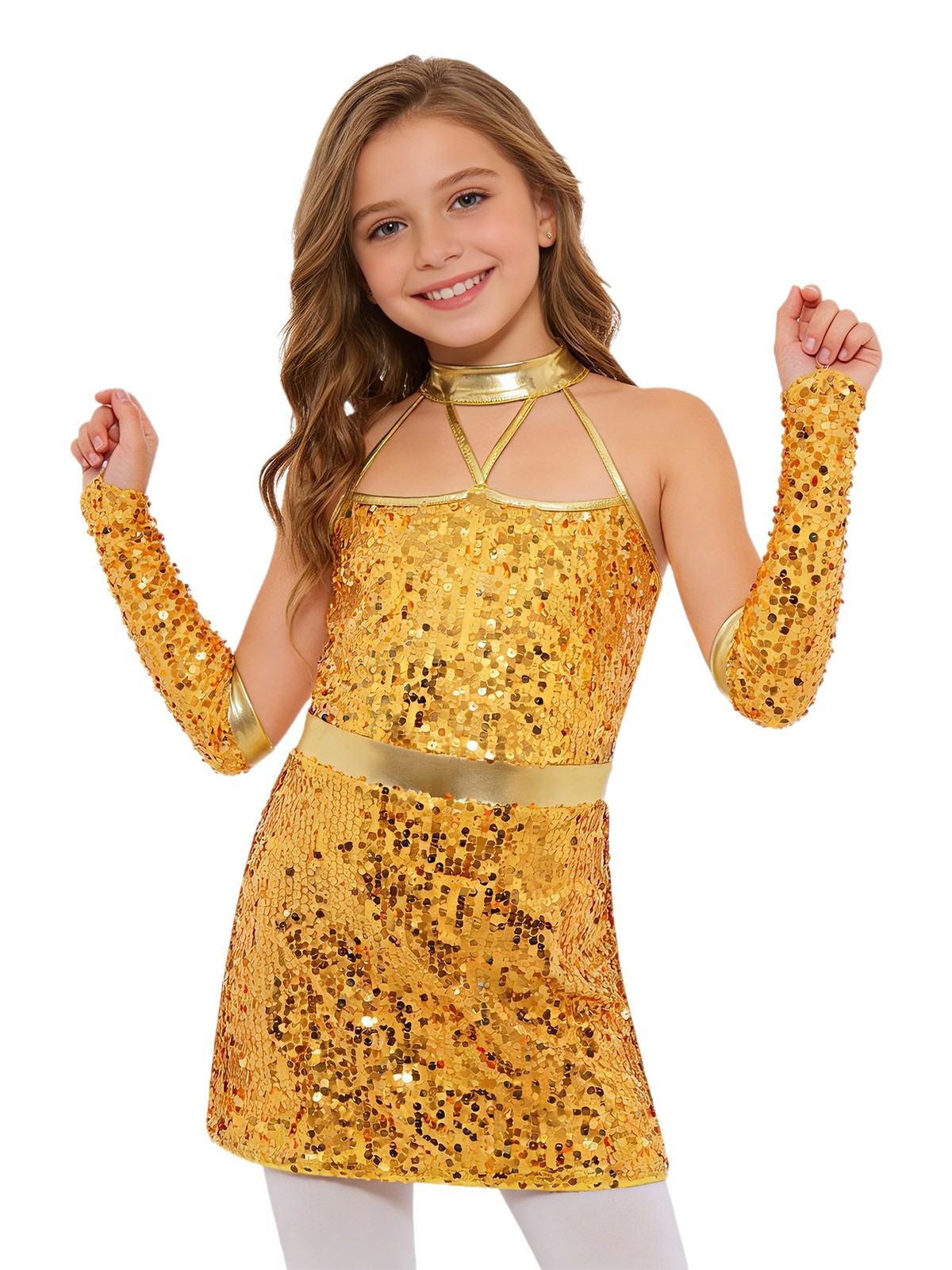 как выглядит Kids Girls Dancewear Ballroom Dress Cocktail Dance Dress Stage Costume Sequins фото